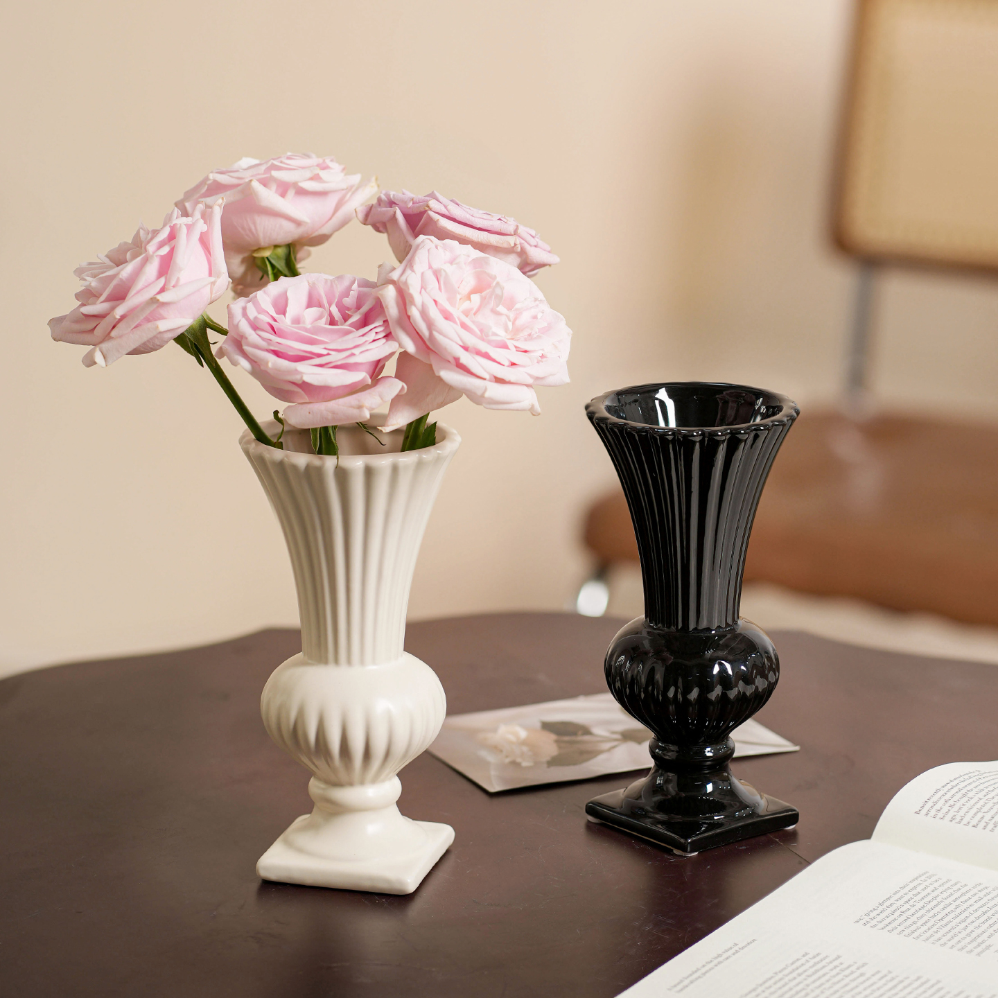 花瓶陶瓷黑色摆件客厅插花高级轻奢法式水养鲜花玫瑰创意小众简约