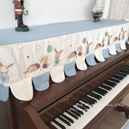 马小萌原创新品简约现代蓝白色卡通兔子防尘半罩钢琴罩钢琴套盖布