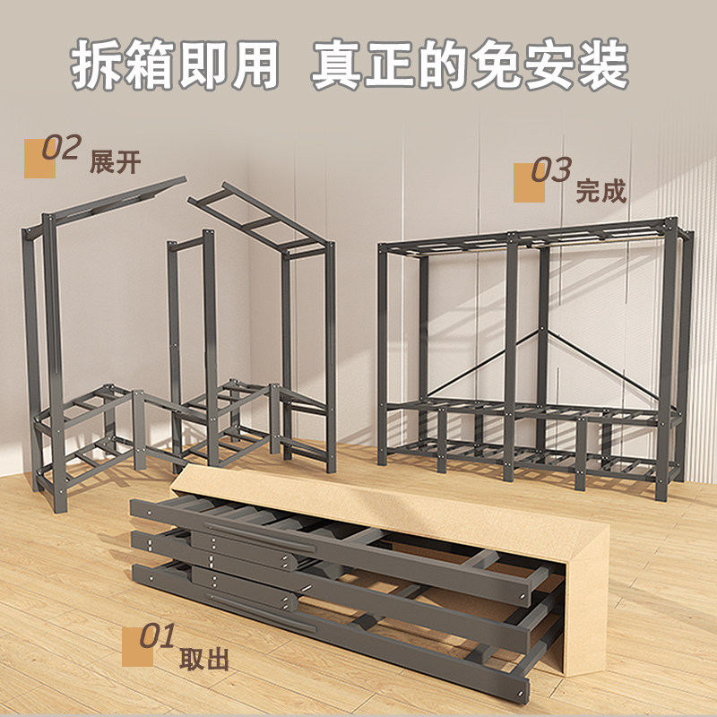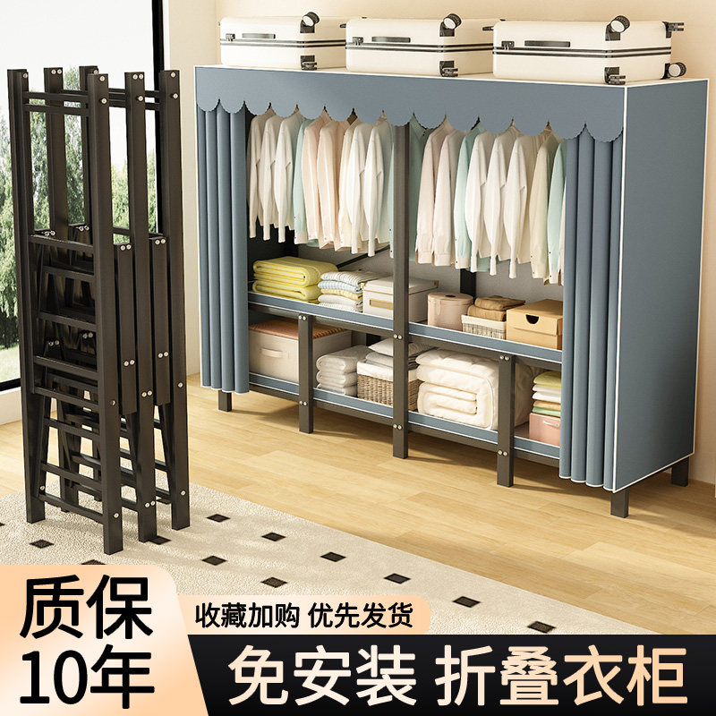 简易衣柜卧室家用一体式免安装折叠布衣柜出租房用加粗全钢架衣橱