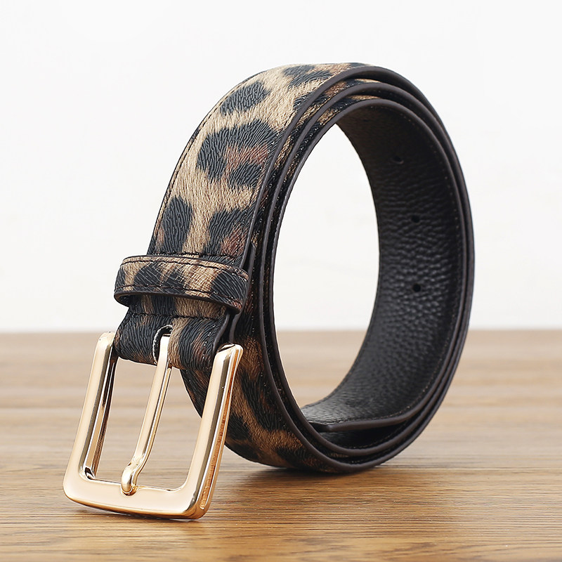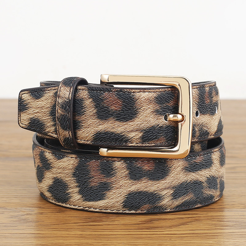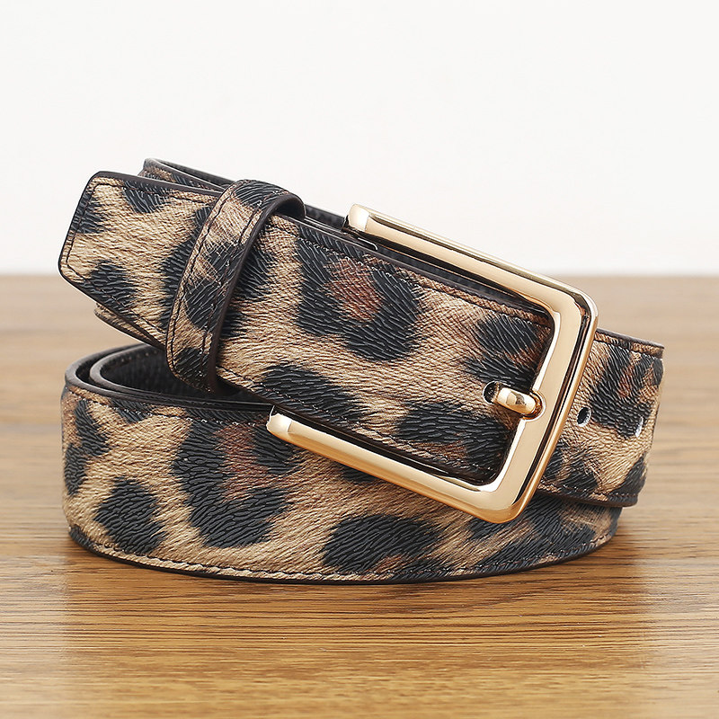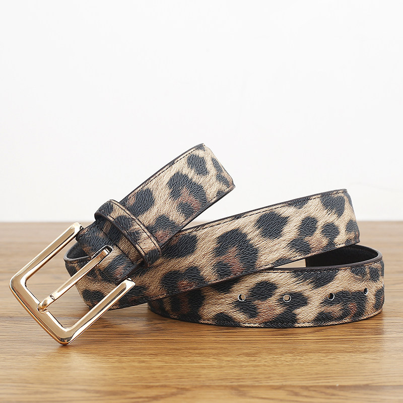 豹纹皮带头层牛皮腰带女士真皮休闲裤带个性时尚牛仔裤ins风针扣