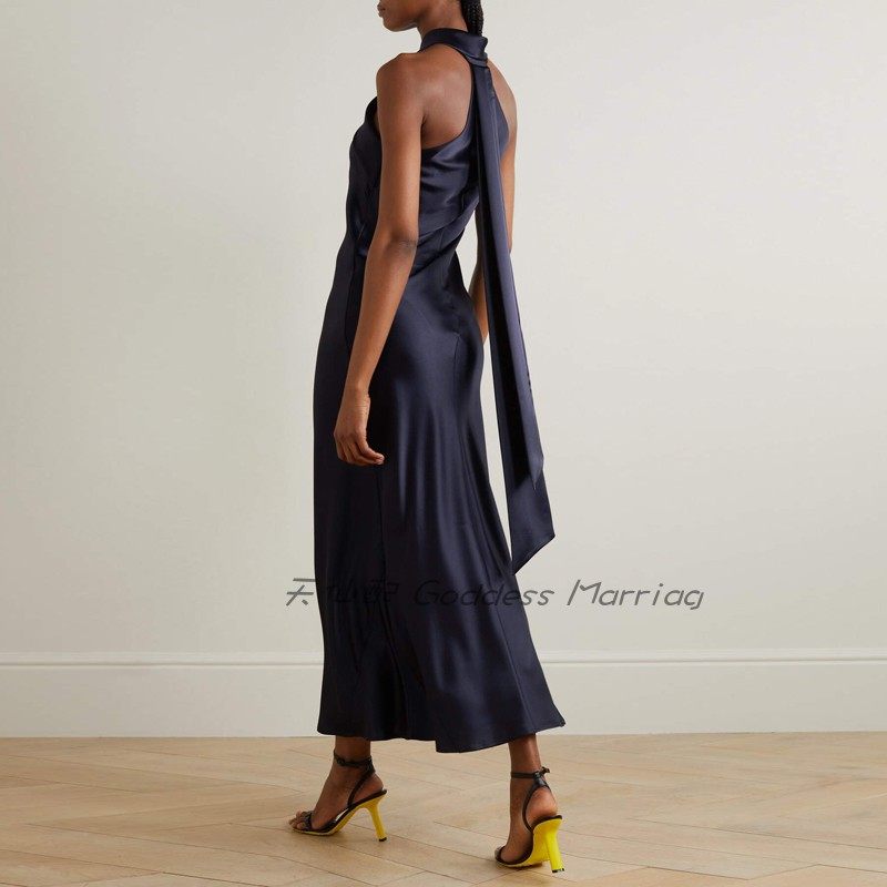 时尚大方中长藏青色小礼服连衣裙