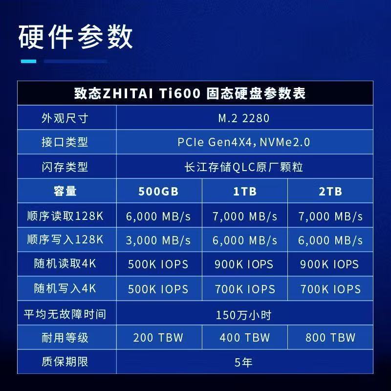 致态Ti600 1TB 2TB SSD固态硬盘M.2 NVME Pcie4.0台式机笔记本PS5