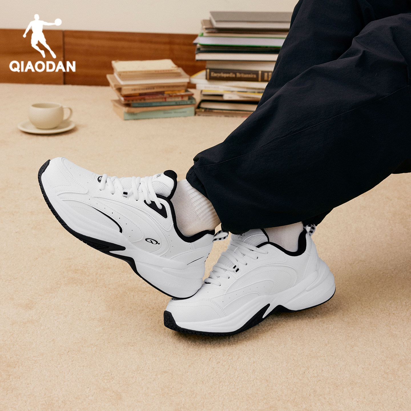 源生乔丹休闲鞋男2025冬季羽毛球鞋皮面防水保暖运动鞋白色老爹鞋