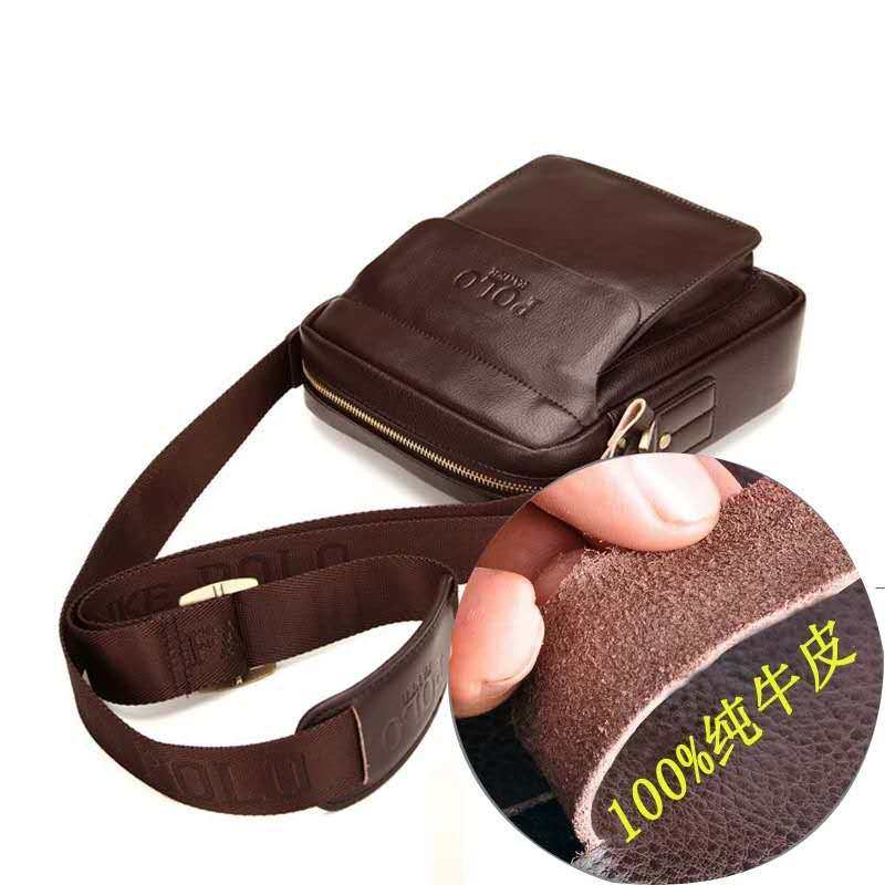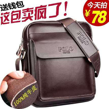 保罗POLO男士真皮单肩包斜挎小挂包休闲竖款背包商务头层牛皮挎包