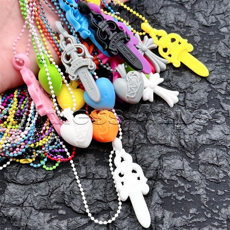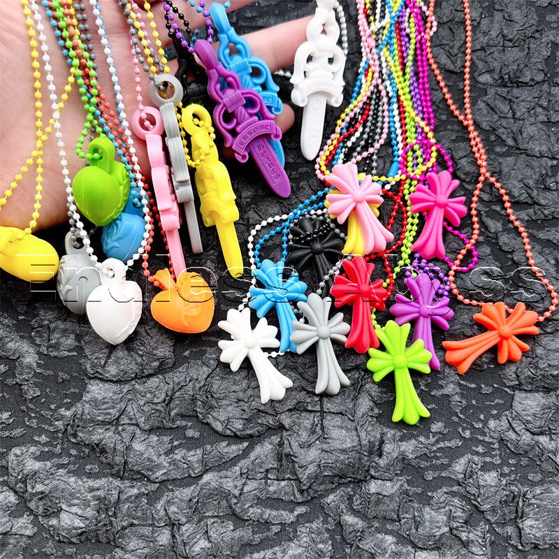 Endless Abyss明星同款彩色十字架橡胶限定宝剑项链锁头 爱心吊坠