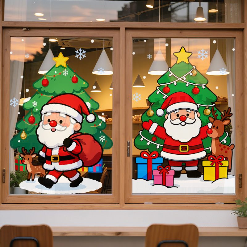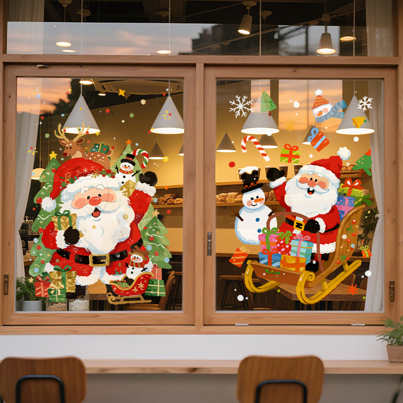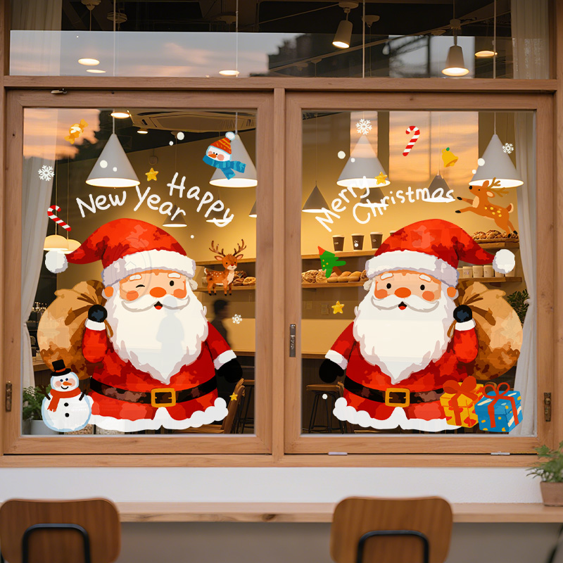 圣诞节主题氛围场景布置装饰品静电贴纸店铺创意玻璃橱窗户墙贴画
