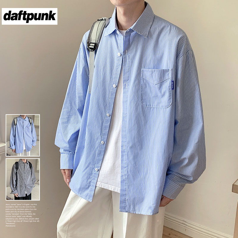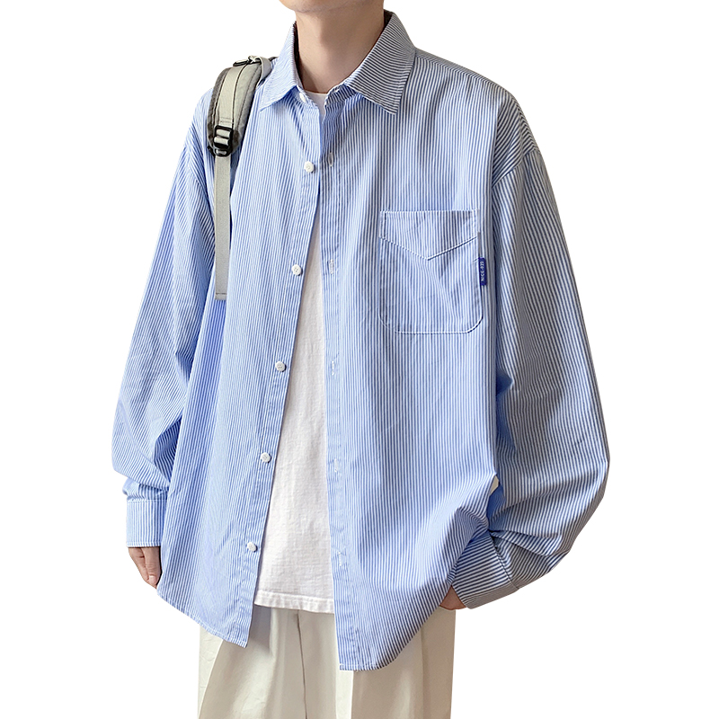 2025夏季廓形宽松细条纹衬衫长袖男女外套复古流行学院风工装衬衣