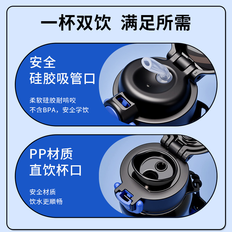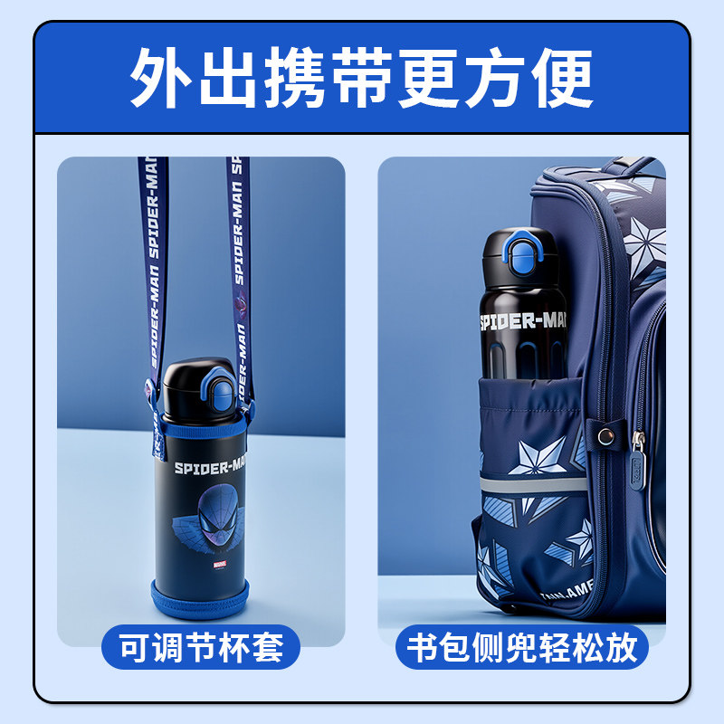 迪士尼儿童保温杯男孩上学专用吸管直饮水杯不锈钢小学生便携水壶