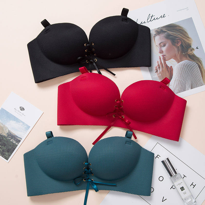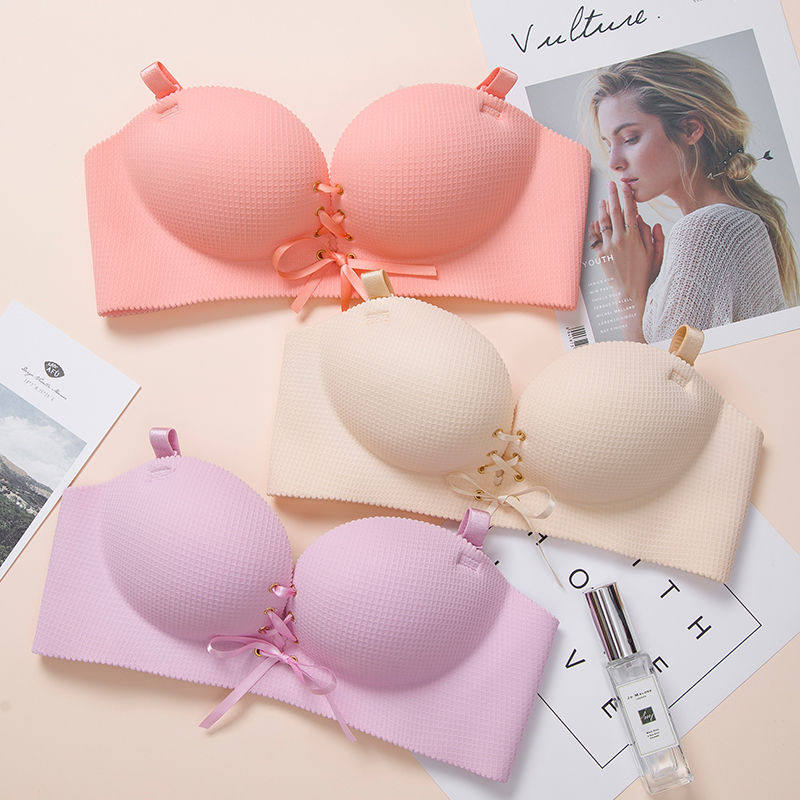 一片式内衣女无痕无钢圈聚拢拉绳小胸罩加厚性感绑带薄款文胸套装