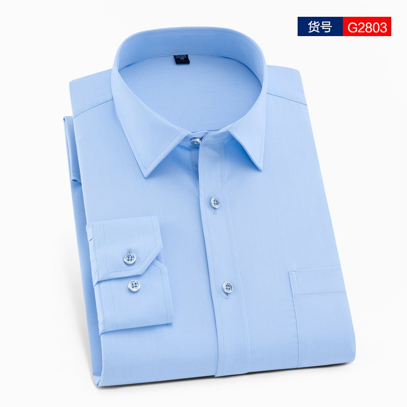 春季长袖衬衫男商务休闲职业工装孔雀蓝衬衣男西装寸衫修身免烫款