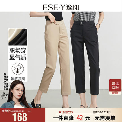 逸阳高腰休闲九分直筒裤女2025夏季新款修身显瘦简约八分烟管裤子