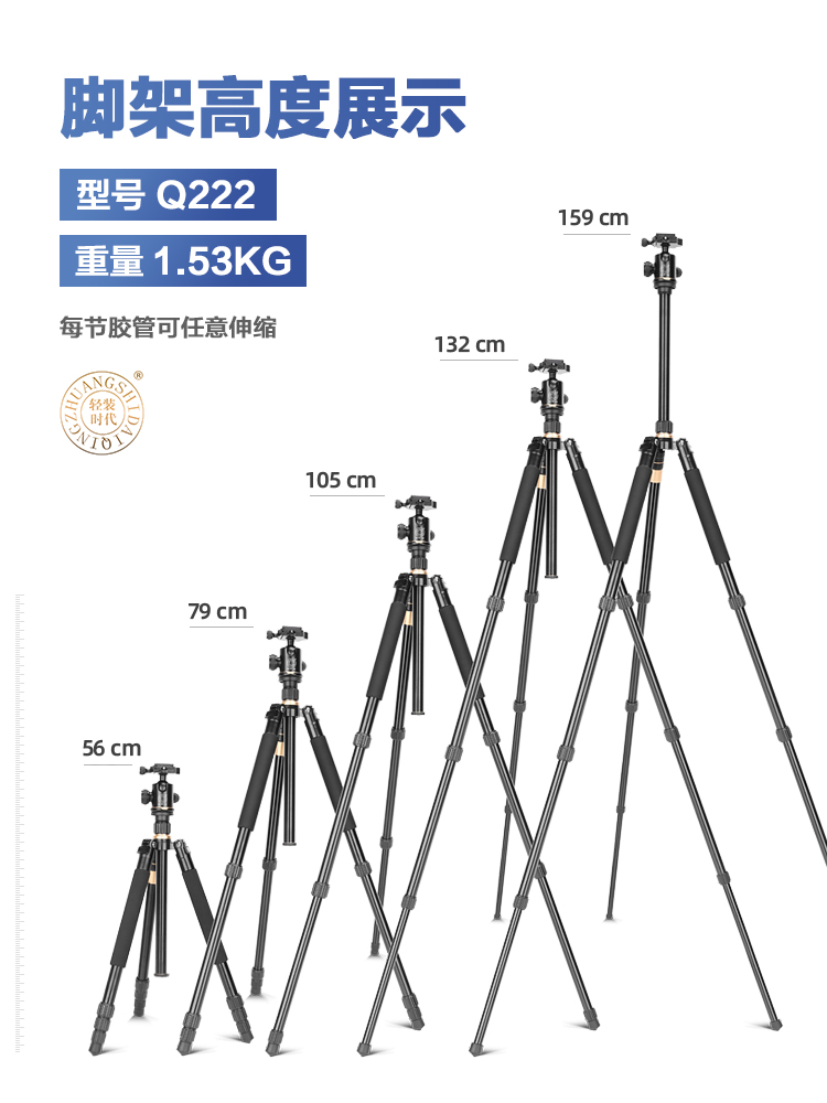 轻装时代手机佳能单反相机三脚架便携微单摄影摄像自拍支架户外旅行拍照多功能直播专业录像云台碳纤维三角架