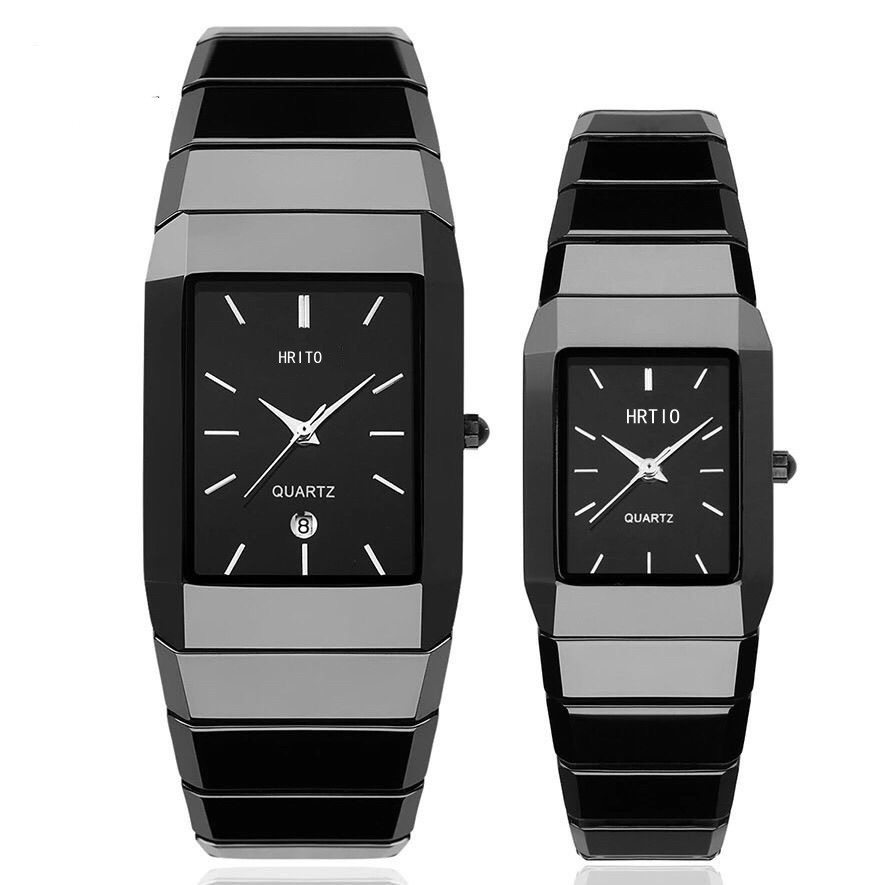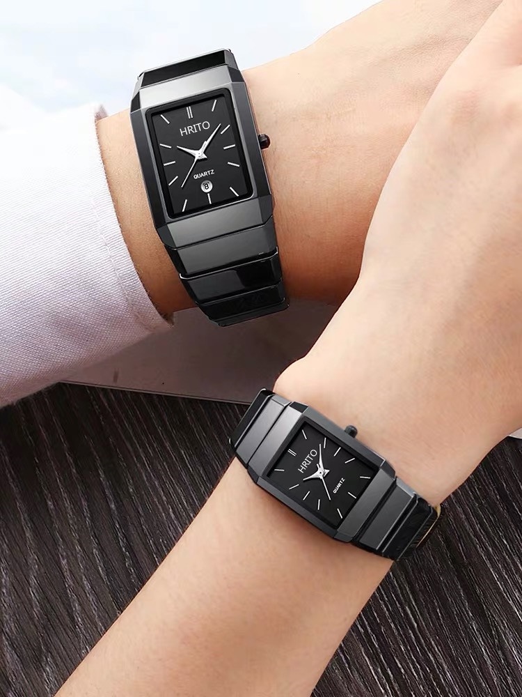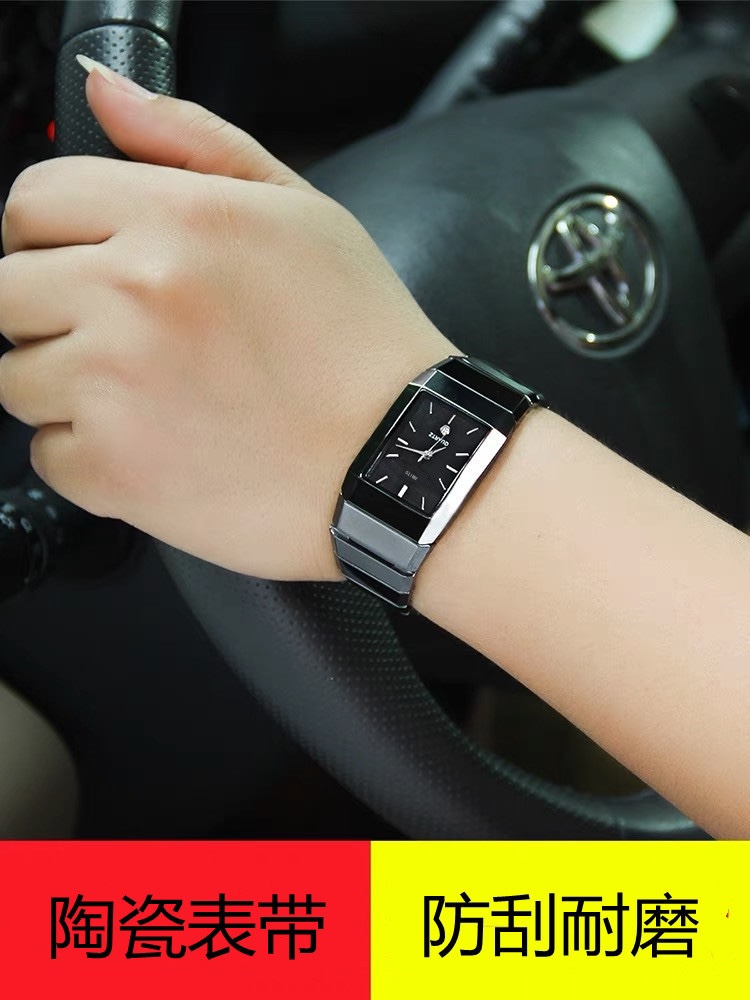 2022新款品牌长方形黑色陶瓷手表男女款石英表钨钢男表防水时尚薄