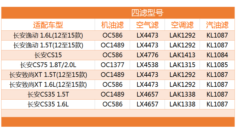 马勒四滤套装长安CS35逸动CS15致尚CS75机油空气滤空调滤汽油滤芯