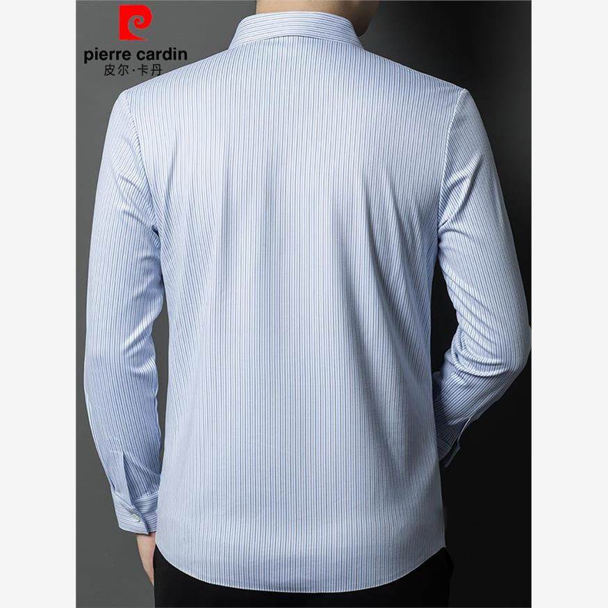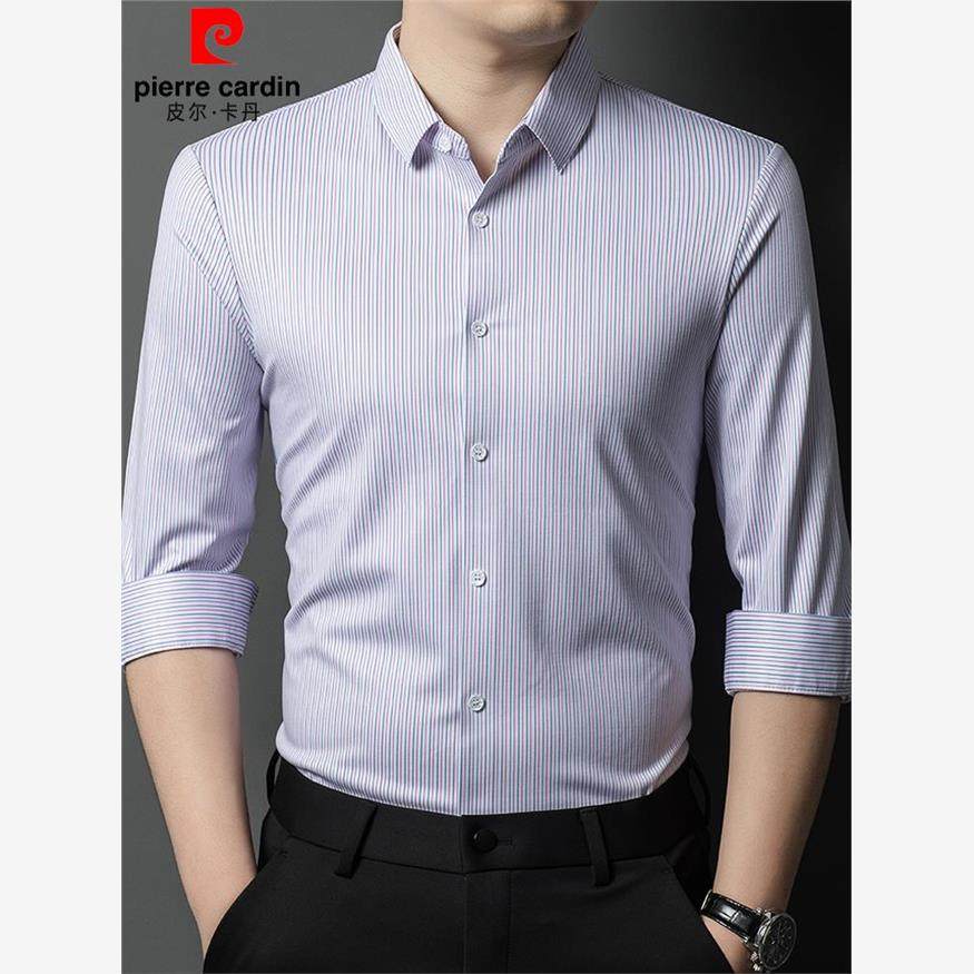 皮尔卡丹高端丝光棉免烫衬衫男长袖细条纹商务休闲春秋季男士衬衣