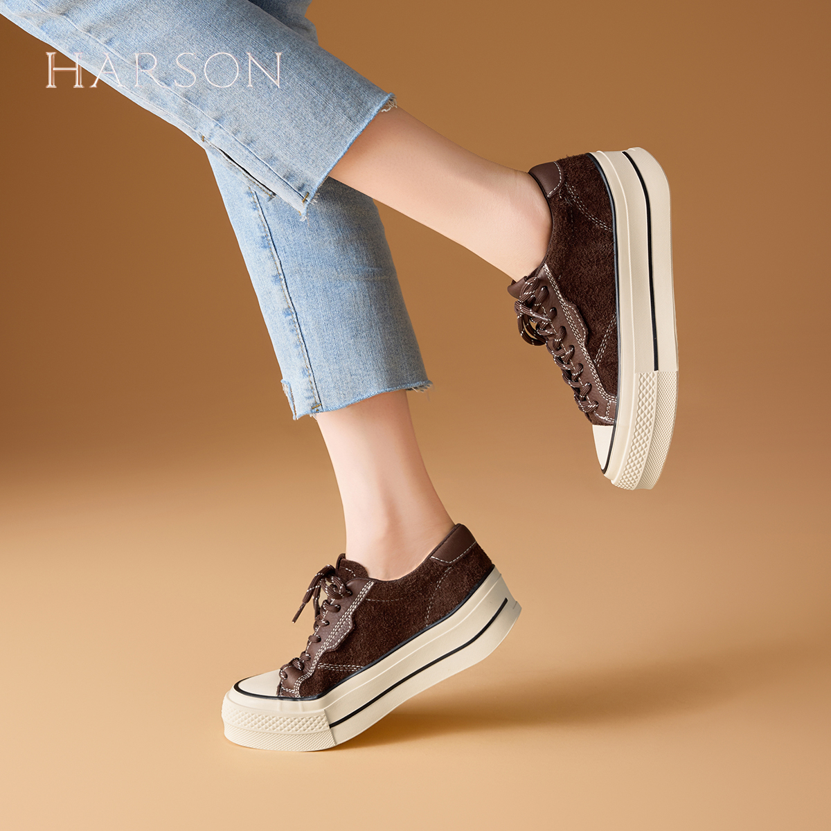 哈森复古板鞋女2025秋季新款百搭休闲鞋厚底增高运动鞋女鞋帆布鞋