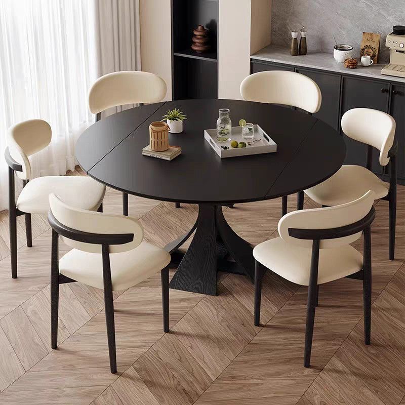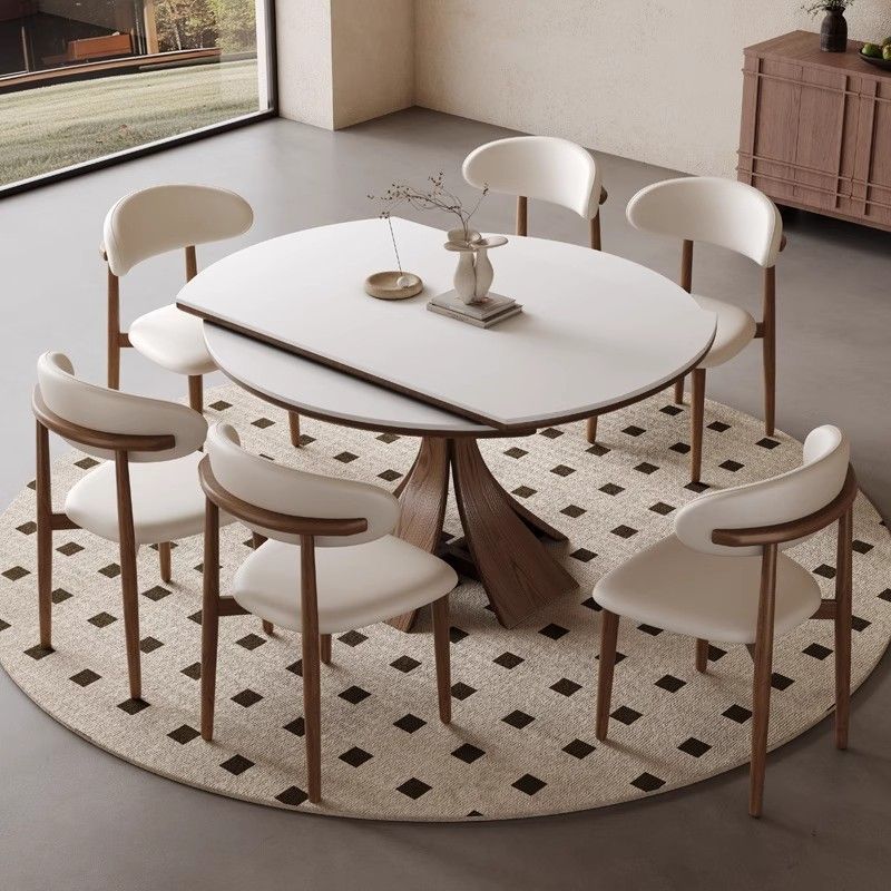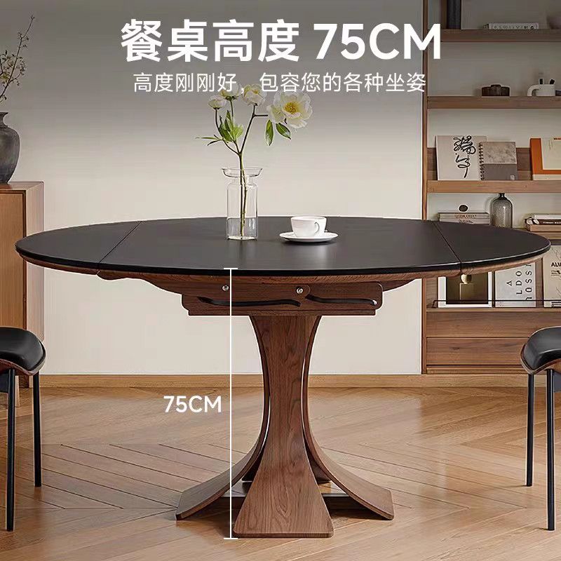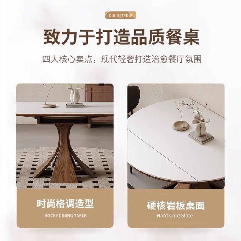 法式复古岩板可伸缩餐桌椅组合中古风实木方变圆形桌小户型饭桌子
