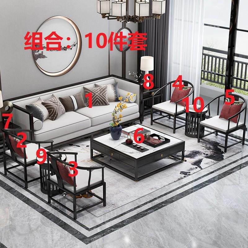 现代简约新中式工厂实木沙发组合售楼处样板间家具禅意轻奢乌金木