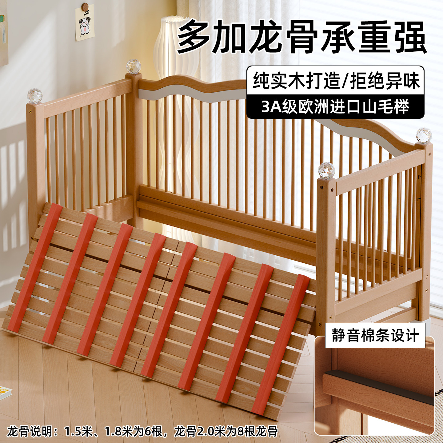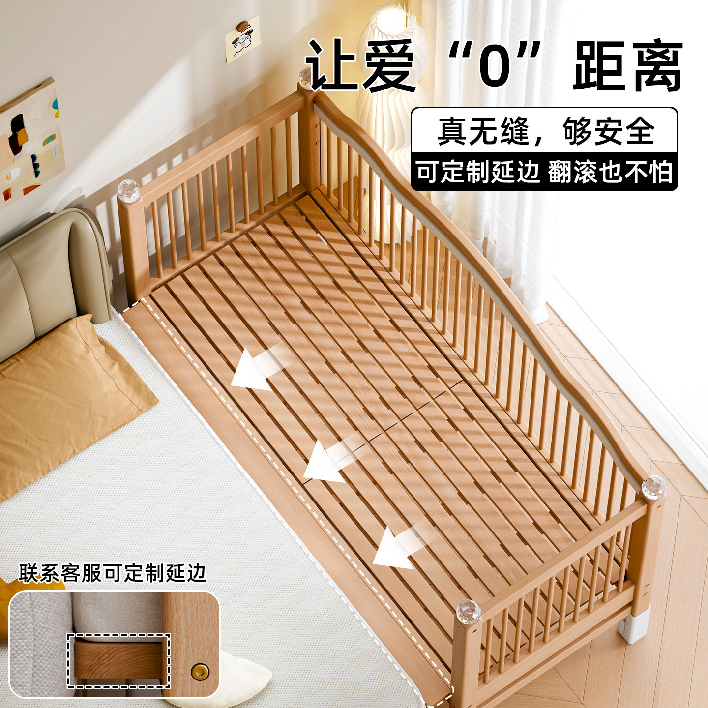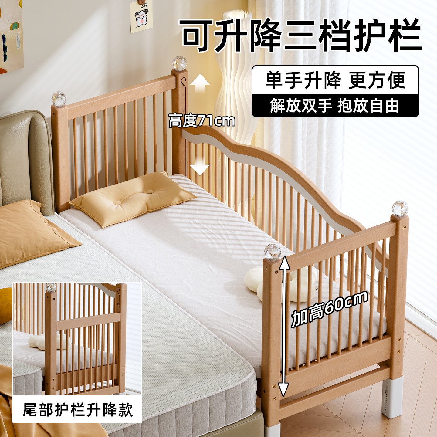 榉木儿童拼接床婴儿床加宽实木拼接大床可升降护栏床边床单人小床