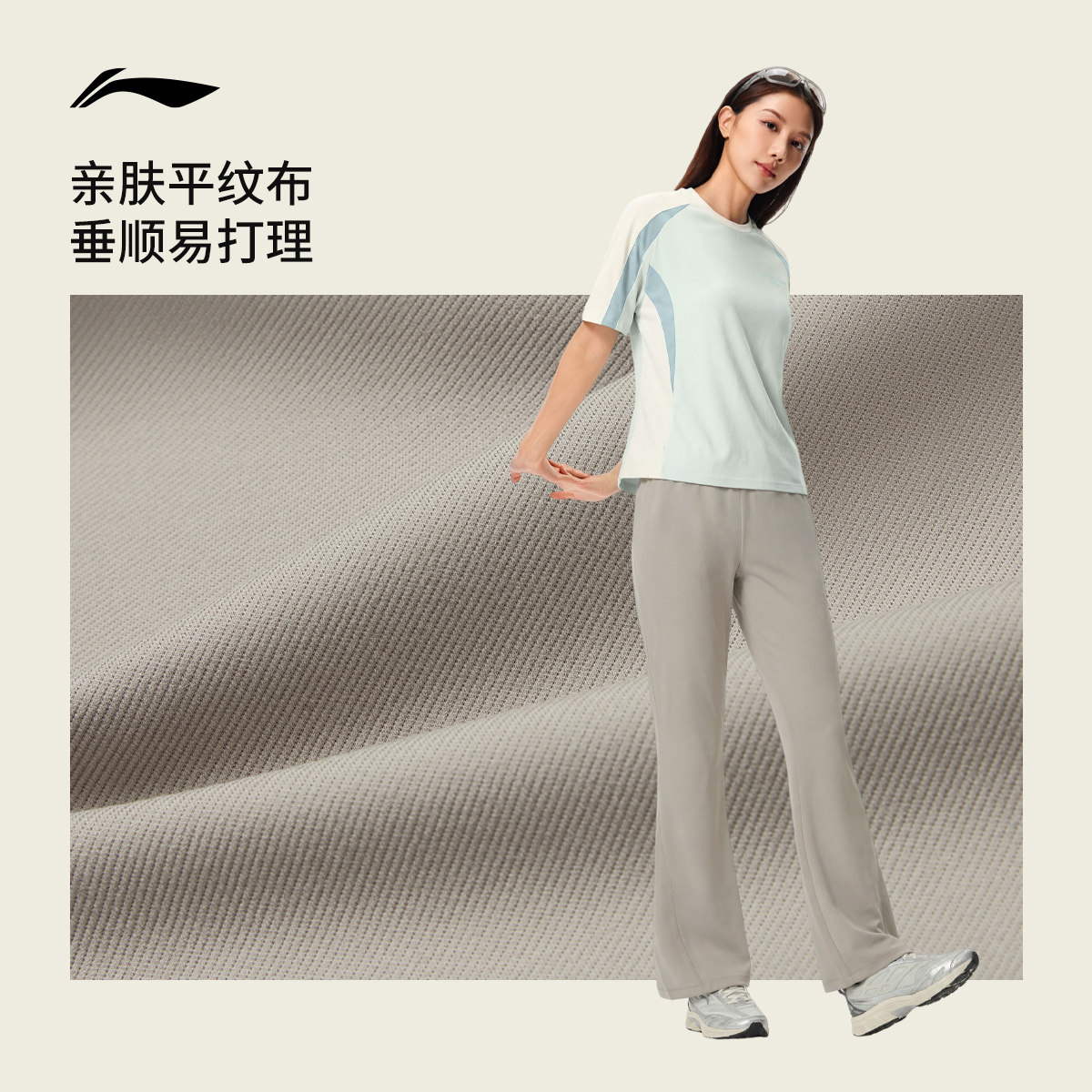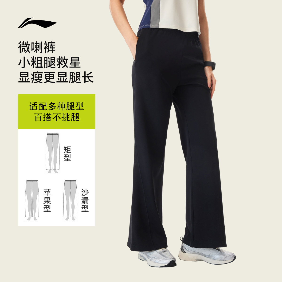 李宁C位裤丨微喇裤女运动长裤健身长裤女装黑色裤子春季针织卫裤