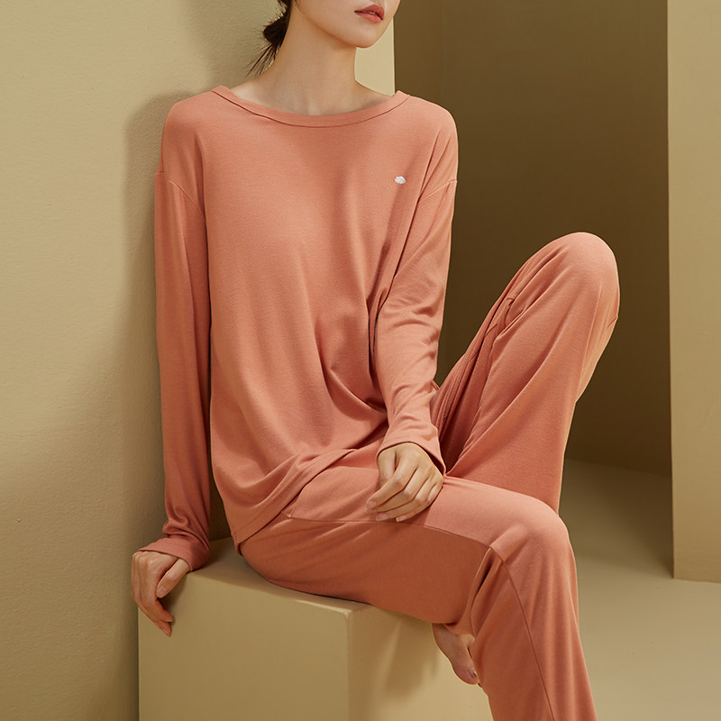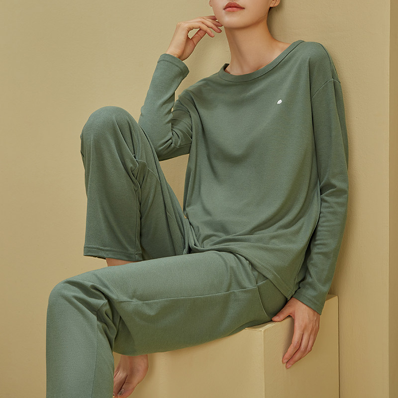 秋冬磨毛睡衣家居服女可出门休闲宽松春秋季套头长袖长裤两件套装