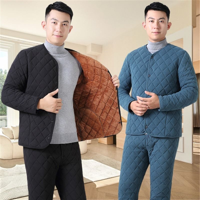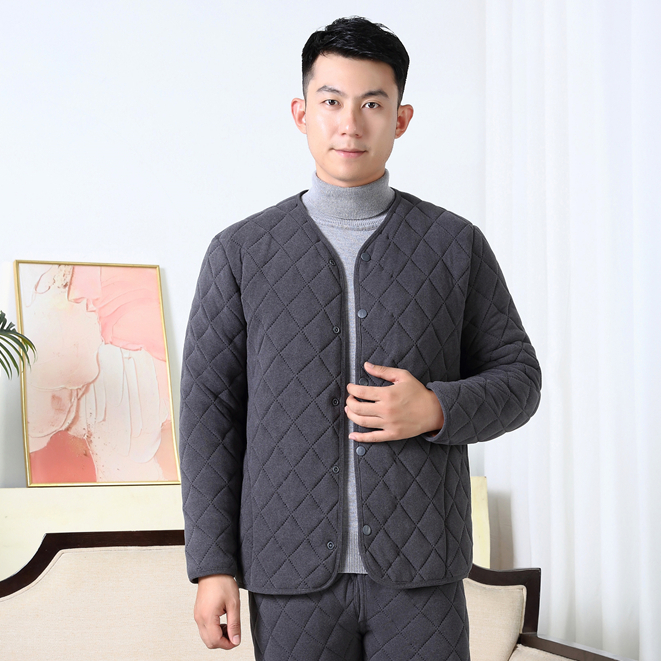 男士大码外套纯色保暖上衣中老年男装加厚加绒宽松棉衣爸爸装棉服