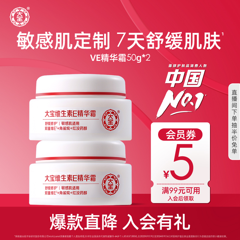大宝维生素e精华霜50g敏感肌乳液面霜补水保湿身体乳舒缓修护正品