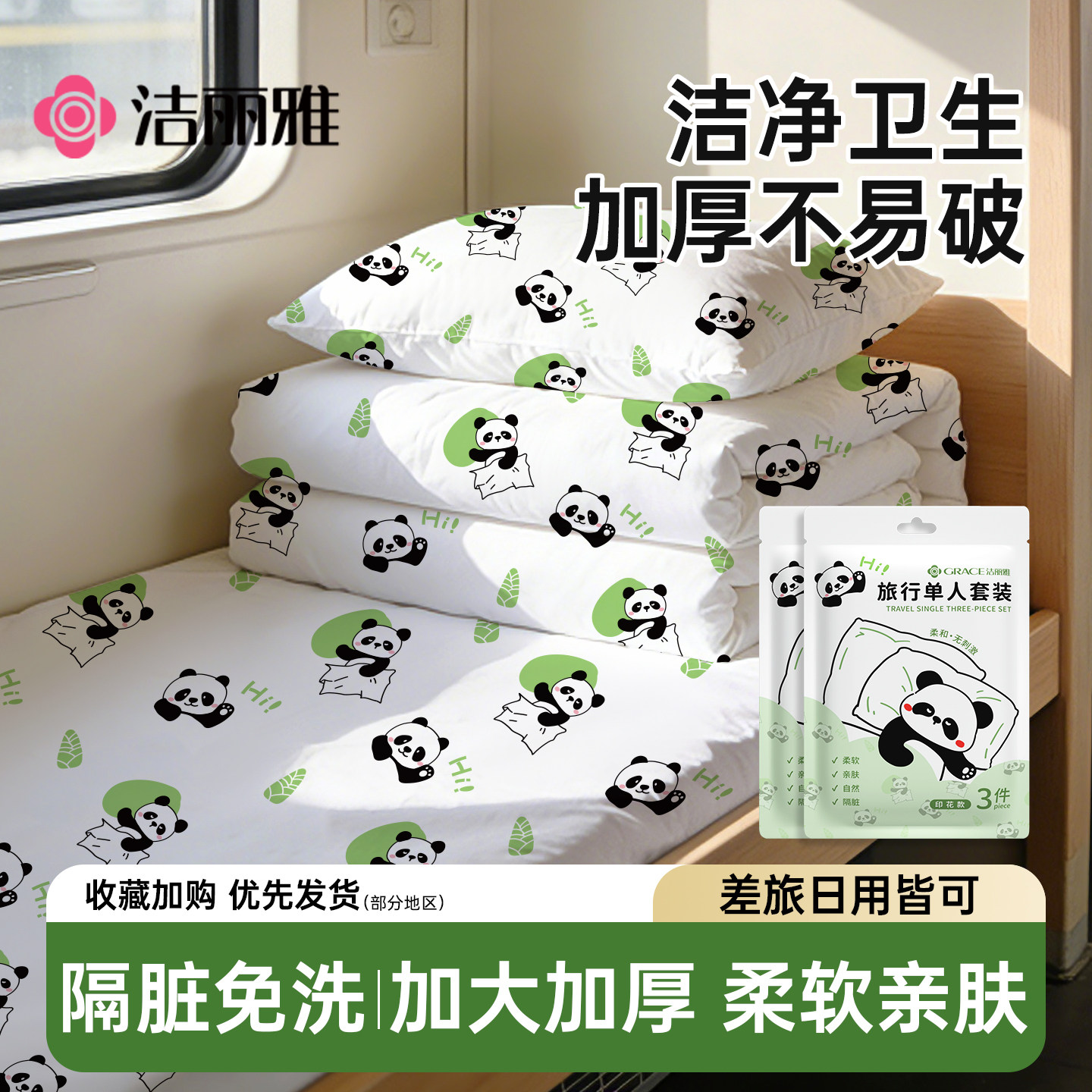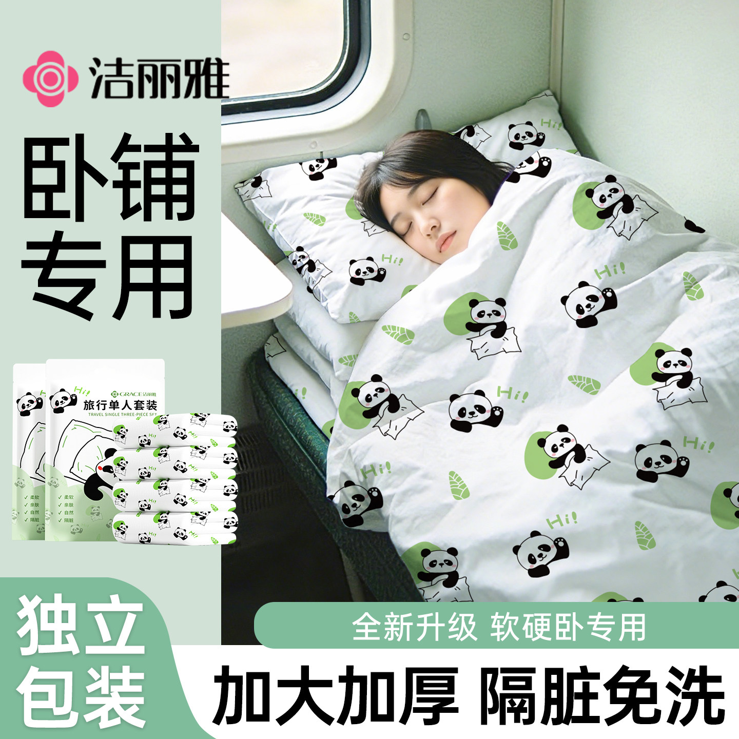 洁丽雅火车卧铺一次性床单三件套被套枕套加厚睡袋软硬卧旅行单人