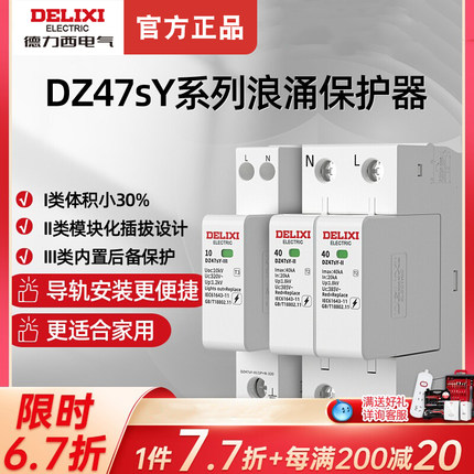 德力西DZ47sY浪涌电源防雷器避雷2p家用4p防雷电涌保护器320V385V