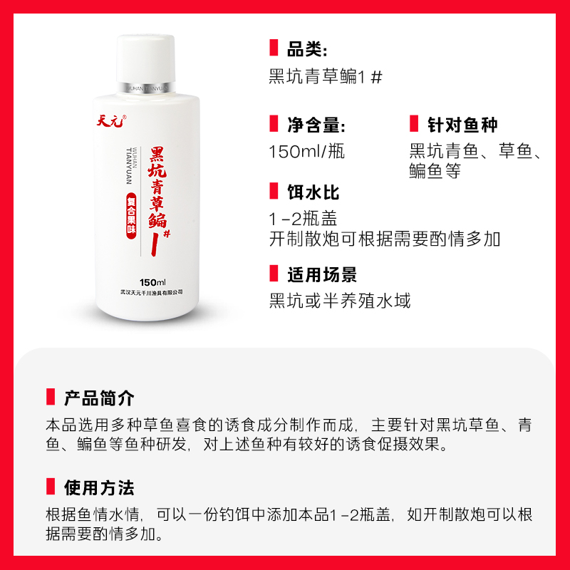 武汉天元黑坑青草鳊1号-复合果味钓鱼鱼饵青草鳊饵料小药添加剂