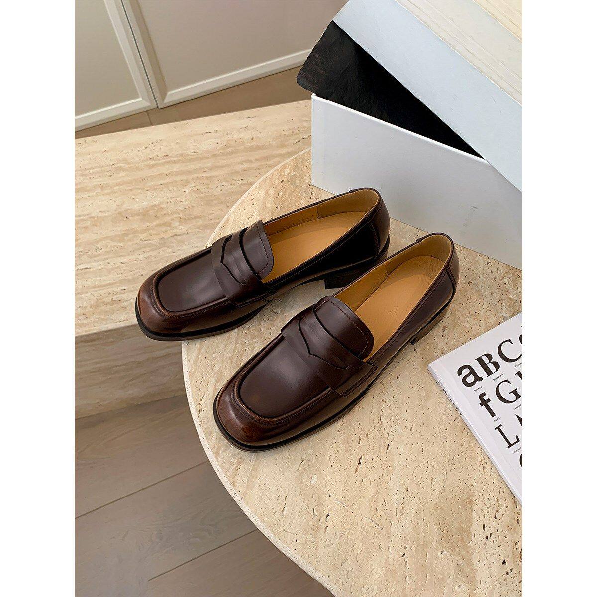 乐福鞋女2026年春季新款中跟真皮一脚蹬单鞋潮百搭英伦风小皮鞋