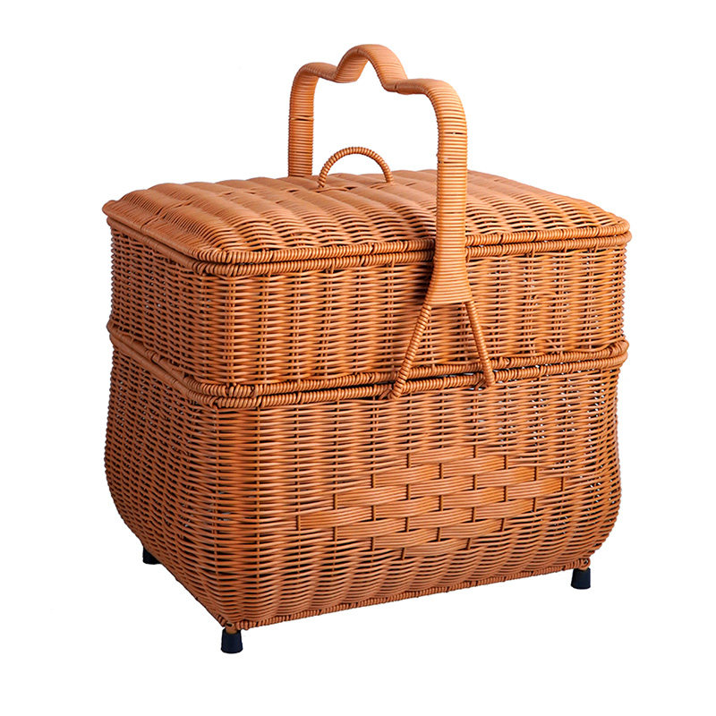 两层拜财神篮拜拜手提篮子仿藤编