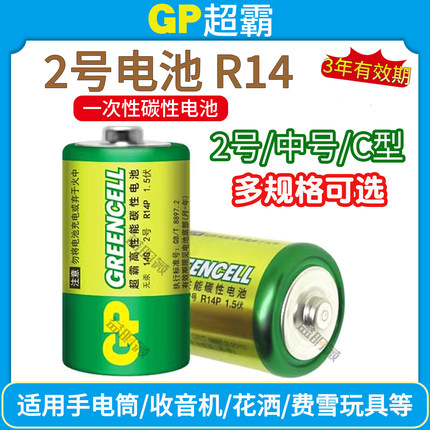 GP超霸碳性2号电池万用表座钟二号C型R14中号超人费雪玩具通三号3