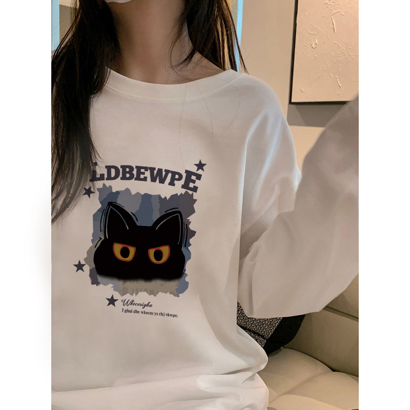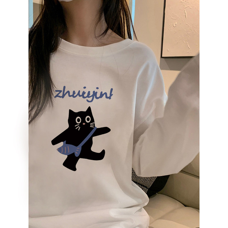 早秋季白色长袖休闲内搭纯色t恤女装简约宽松显瘦大码纯棉打底衫