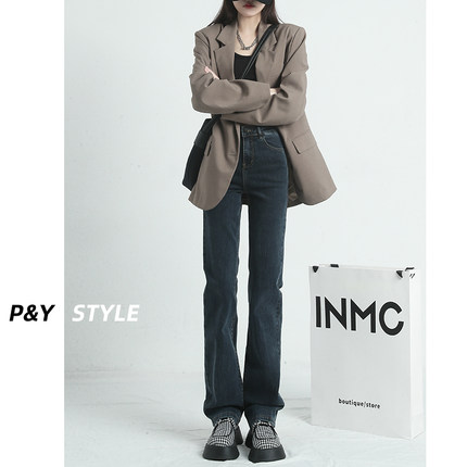 佩艳直筒裤牛仔裤女长裤蓝灰高腰