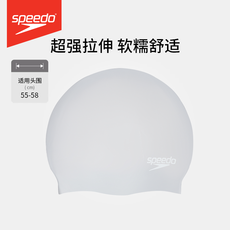 Speedo/速比涛 硅胶泳帽舒适超大弹力防水训练成人游泳帽男女通用