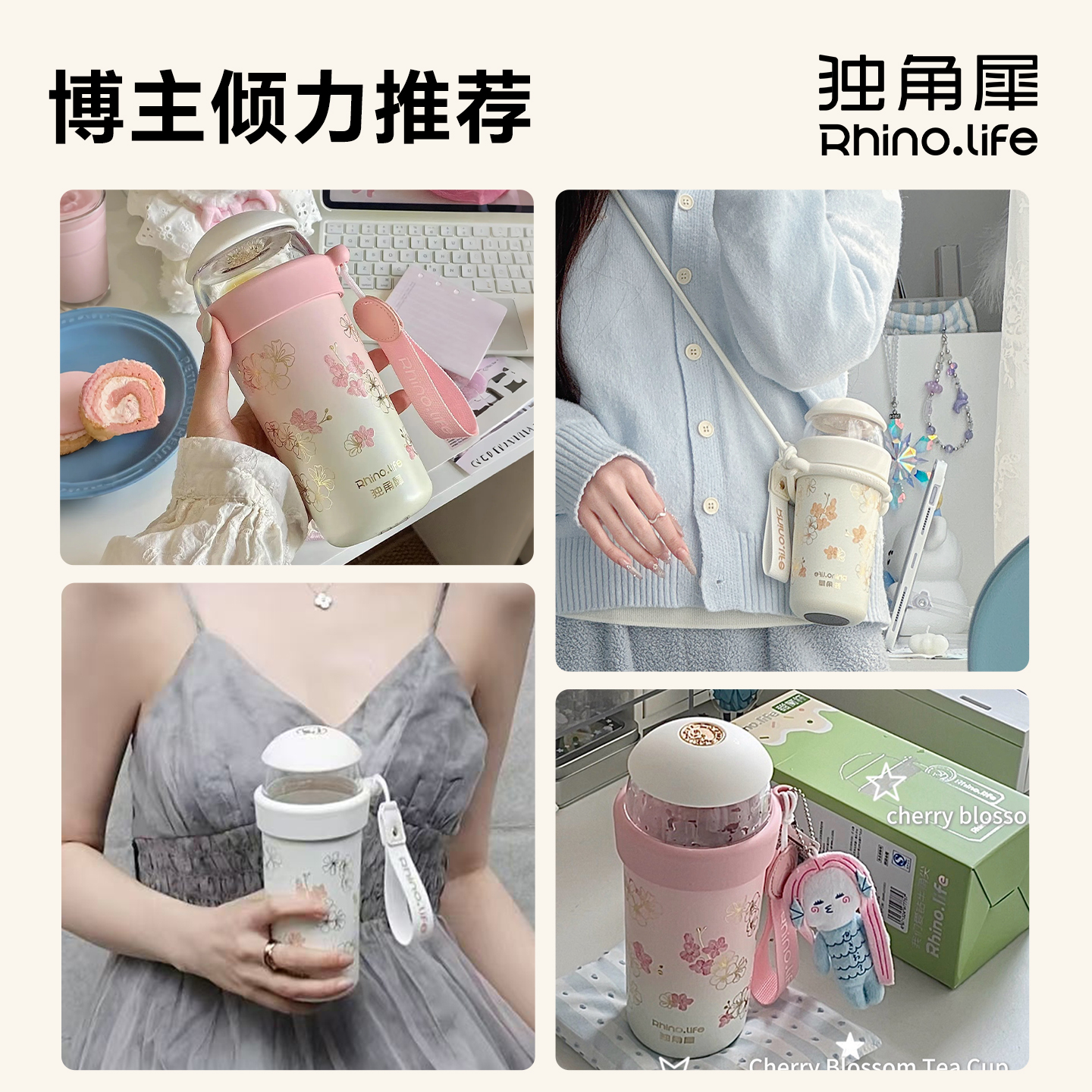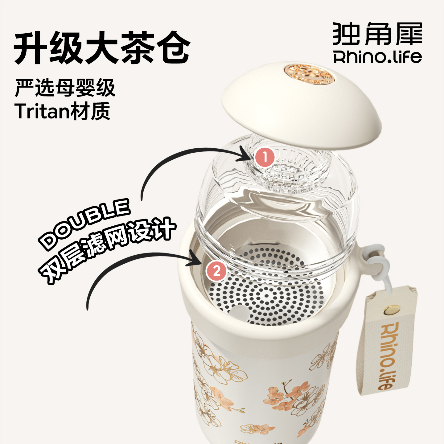 独角犀保温保冷杯陶瓷内胆茶水分离杯泡茶杯便携高颜值水杯女士夏