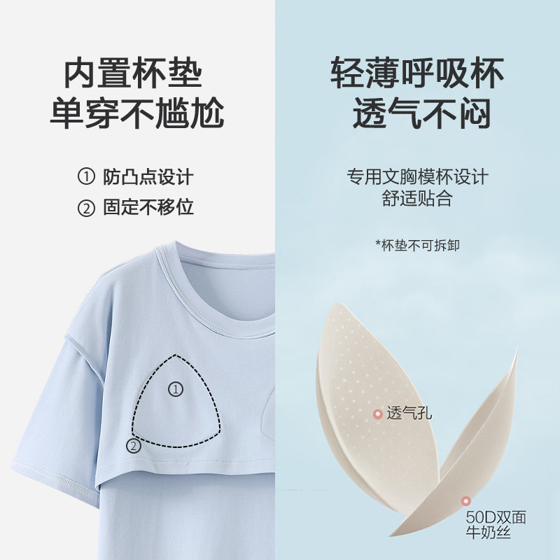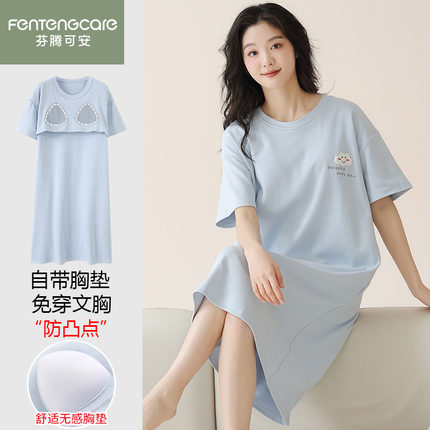 芬腾可安睡裙女款夏季纯棉短袖睡衣可爱甜美带胸垫外穿孕妇连衣裙