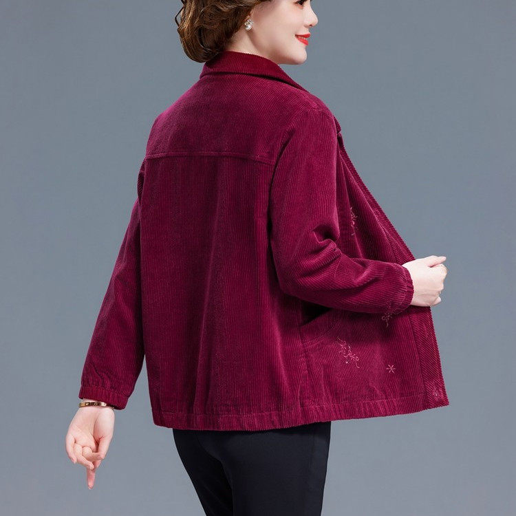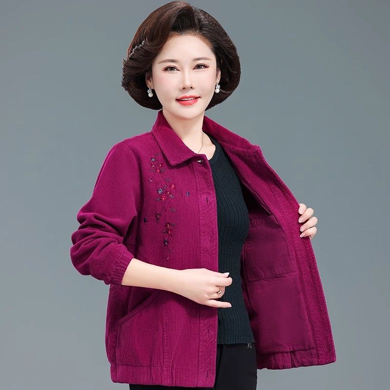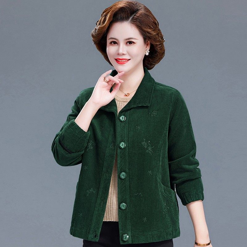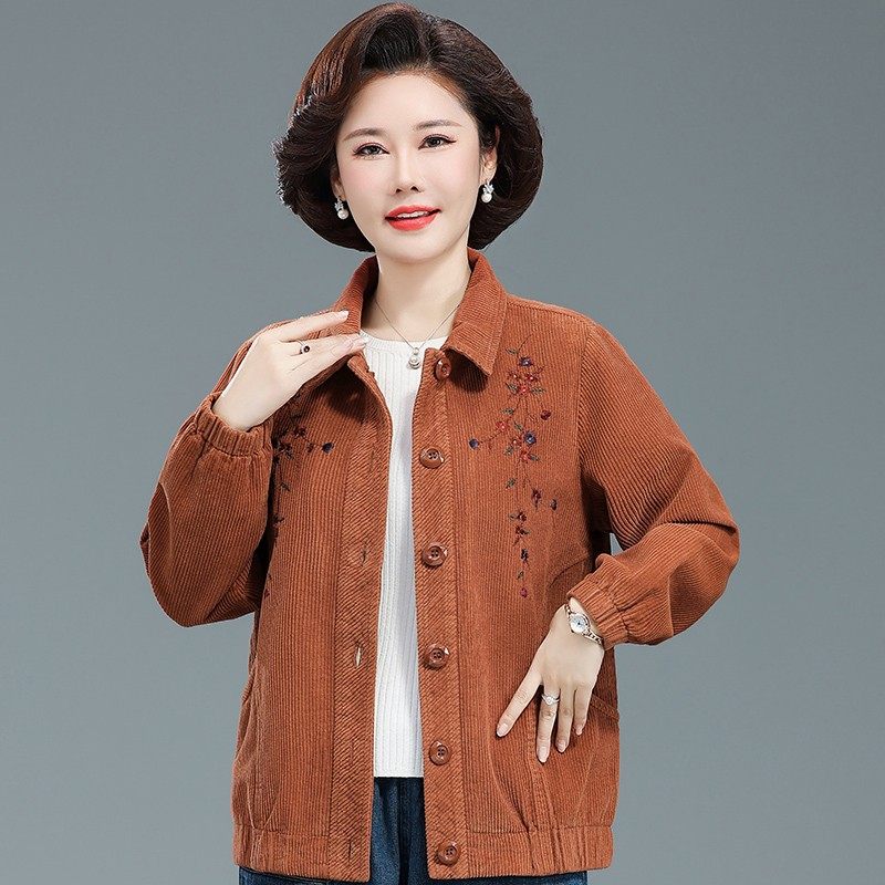 新款中老年女春秋外套纯棉灯芯绒妈妈春季上衣宽松大码衣服奶奶装