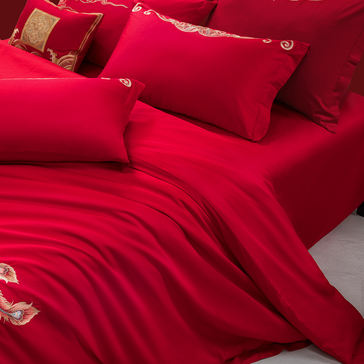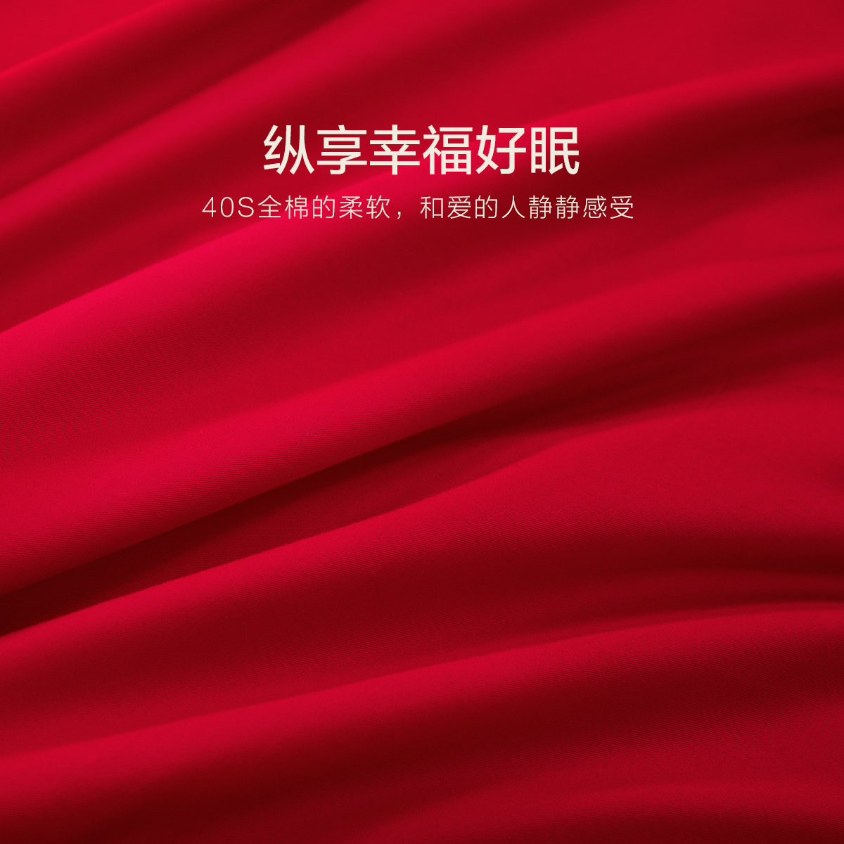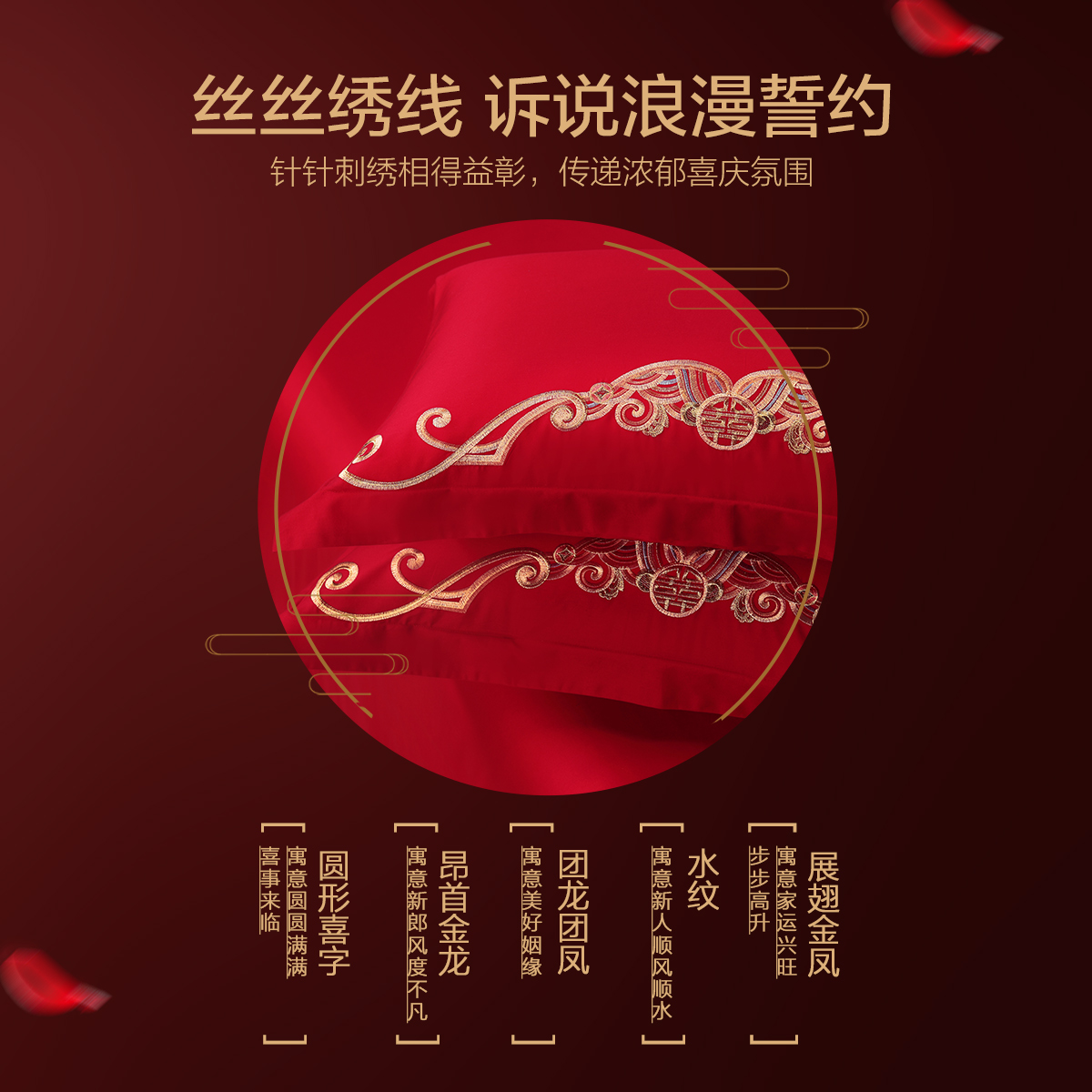 水星家纺结婚四件套纯棉红色婚庆刺绣1.8米床1.5双人床单被套件