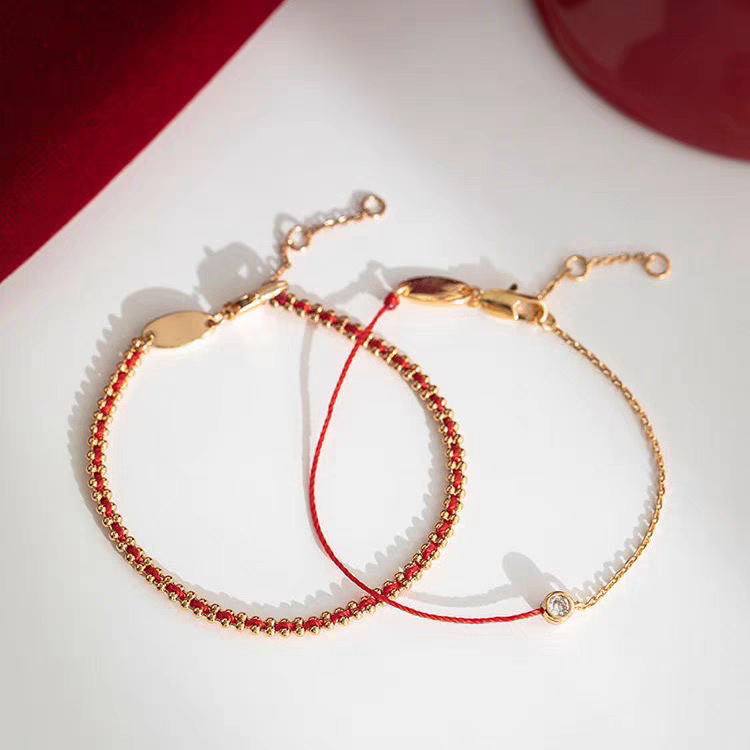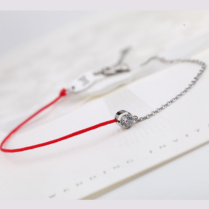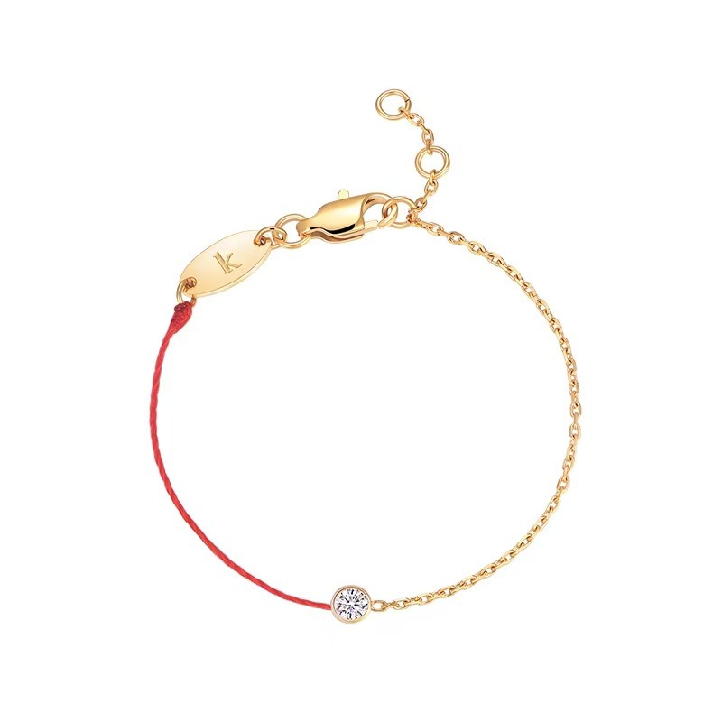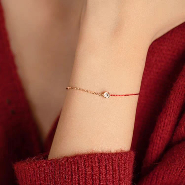 不掉色法国红绳手链钛钢镀18k镶钻单钻红绳本命年红绳