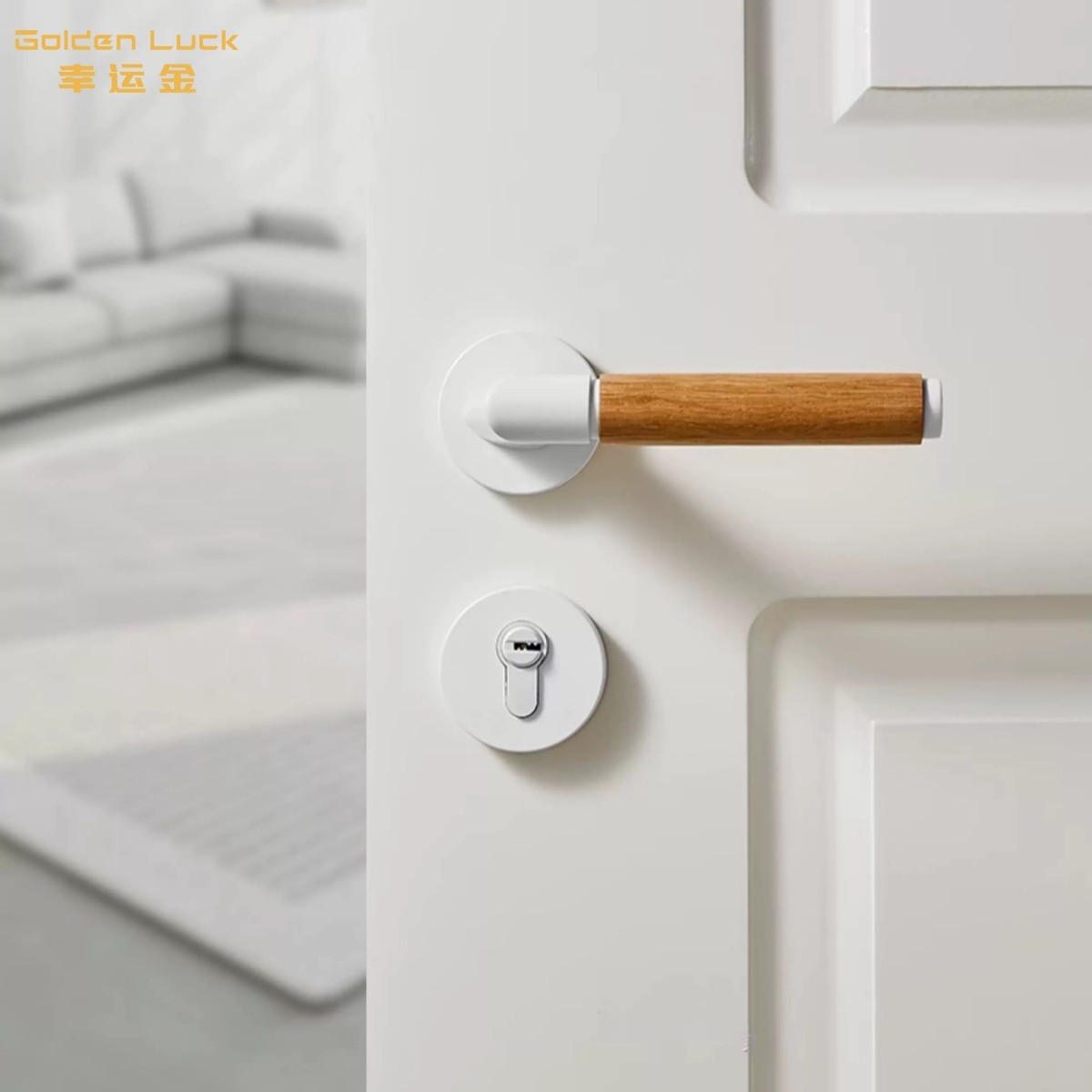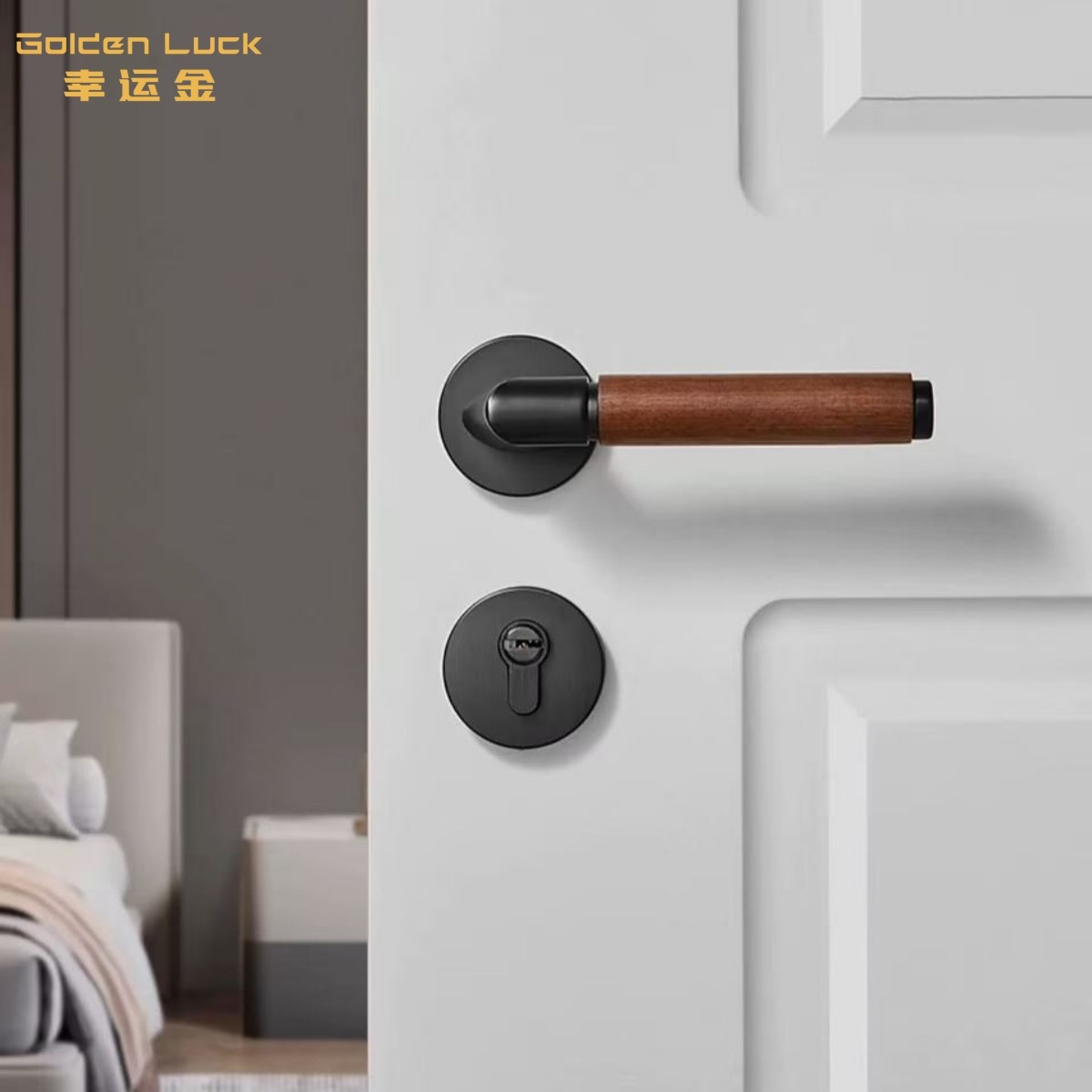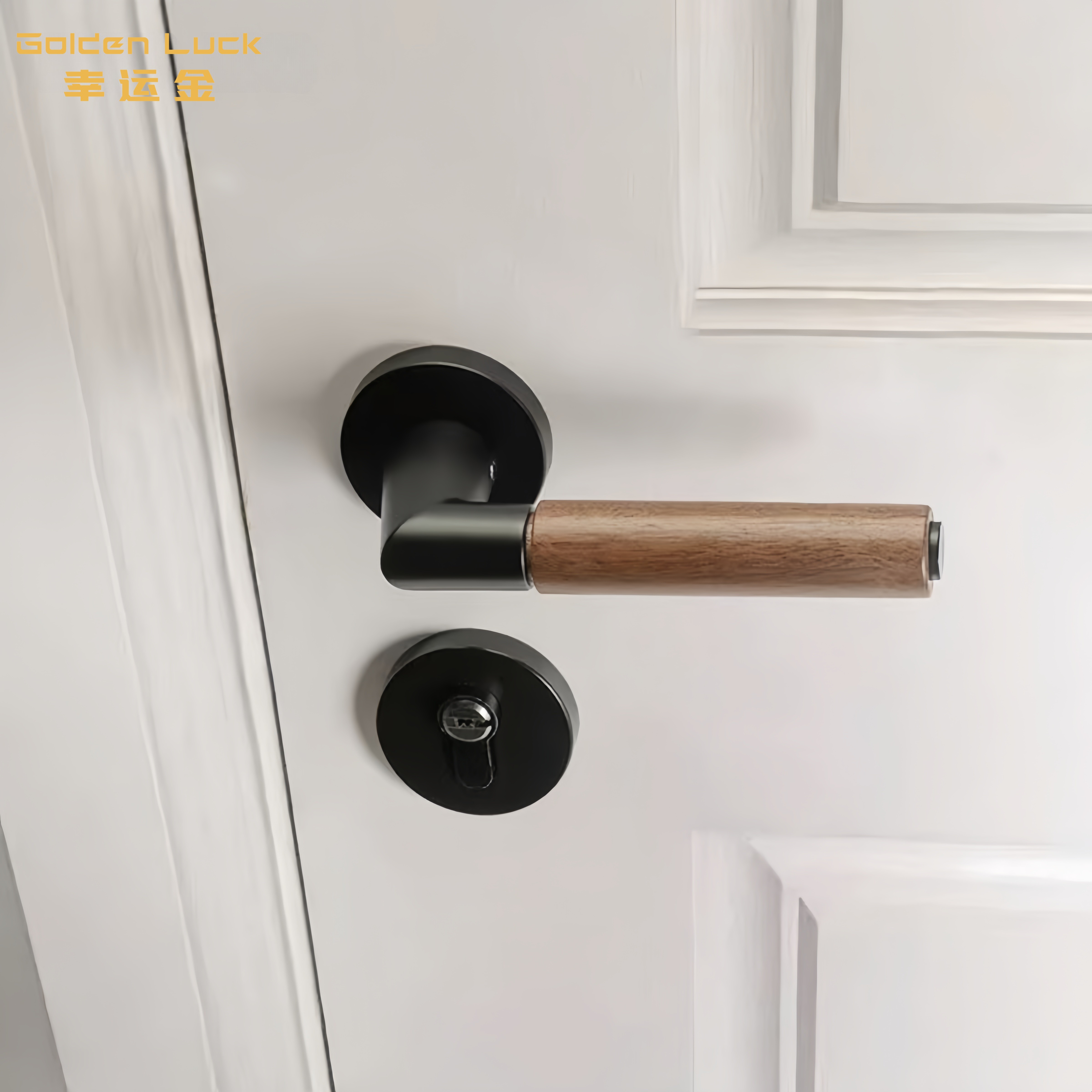 奶油风胡桃木卧室房门锁木门室内原木门把手实木磁吸静音分体门锁