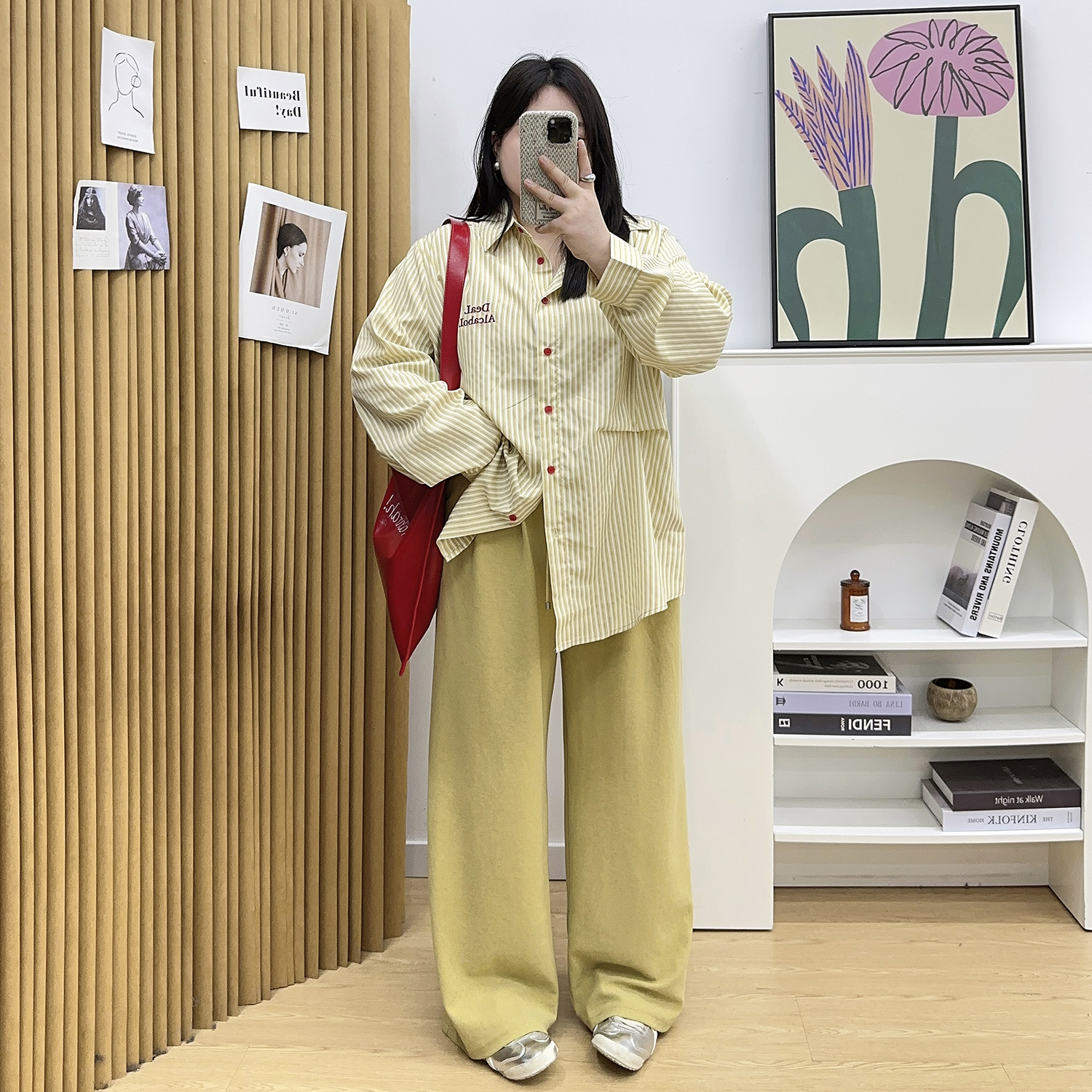 大码慵懒风休闲裤女装春季高腰垂感阔腿裤小个子胖MM显瘦山本裤子