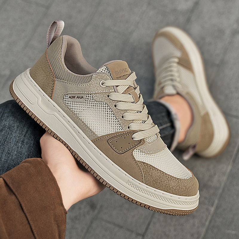 男鞋2025新款秋冬透气运动薄款网面鞋青少年增高休闲工作上班板鞋