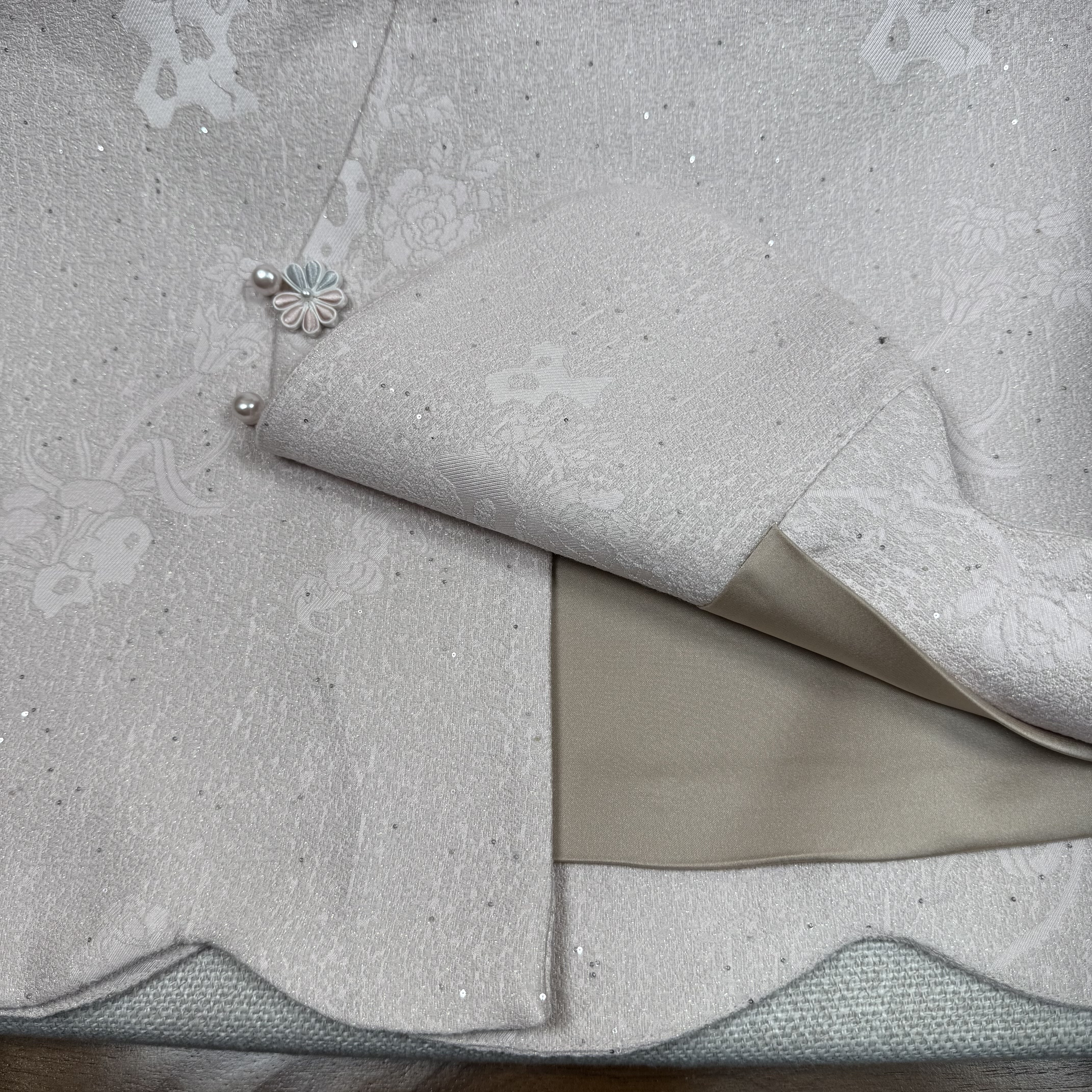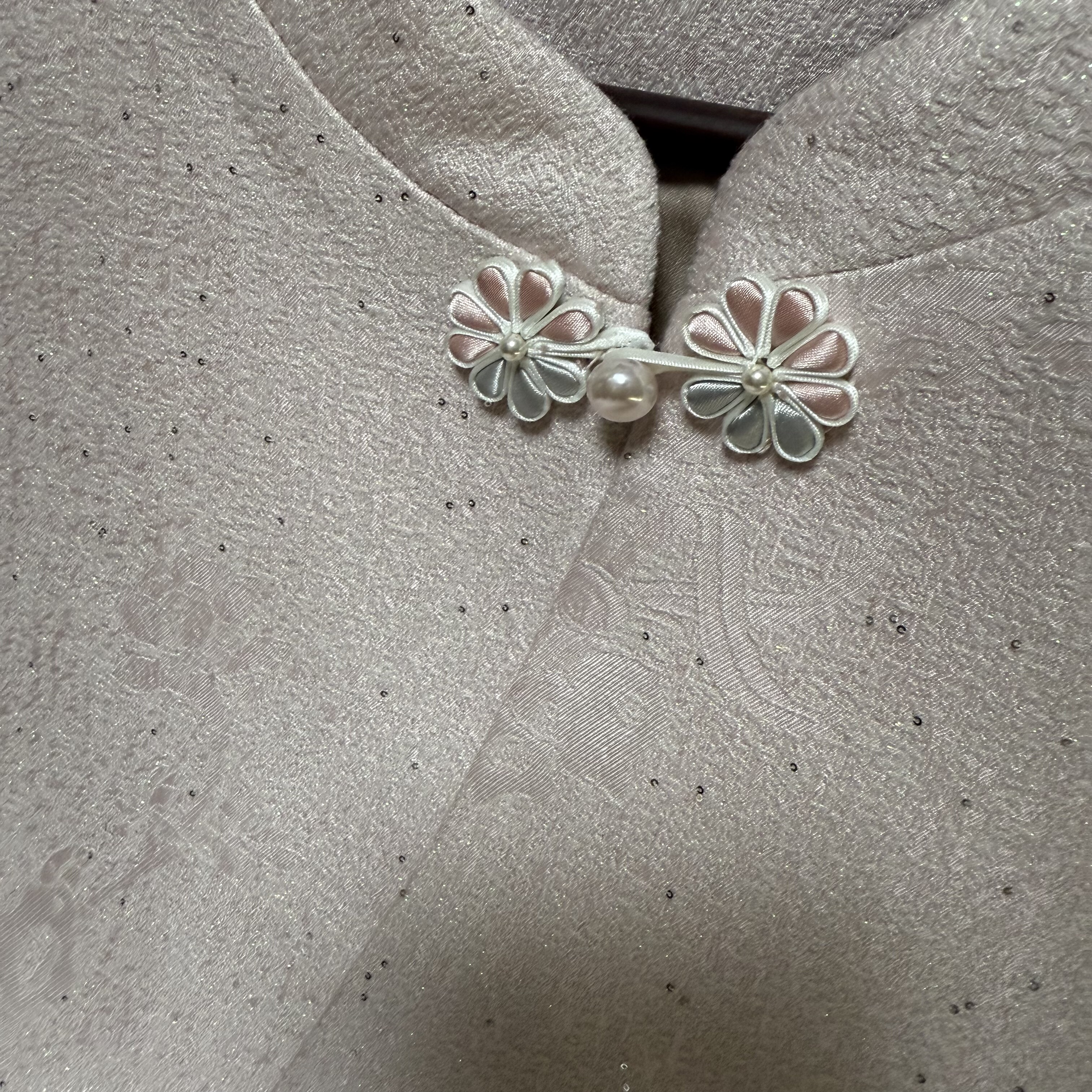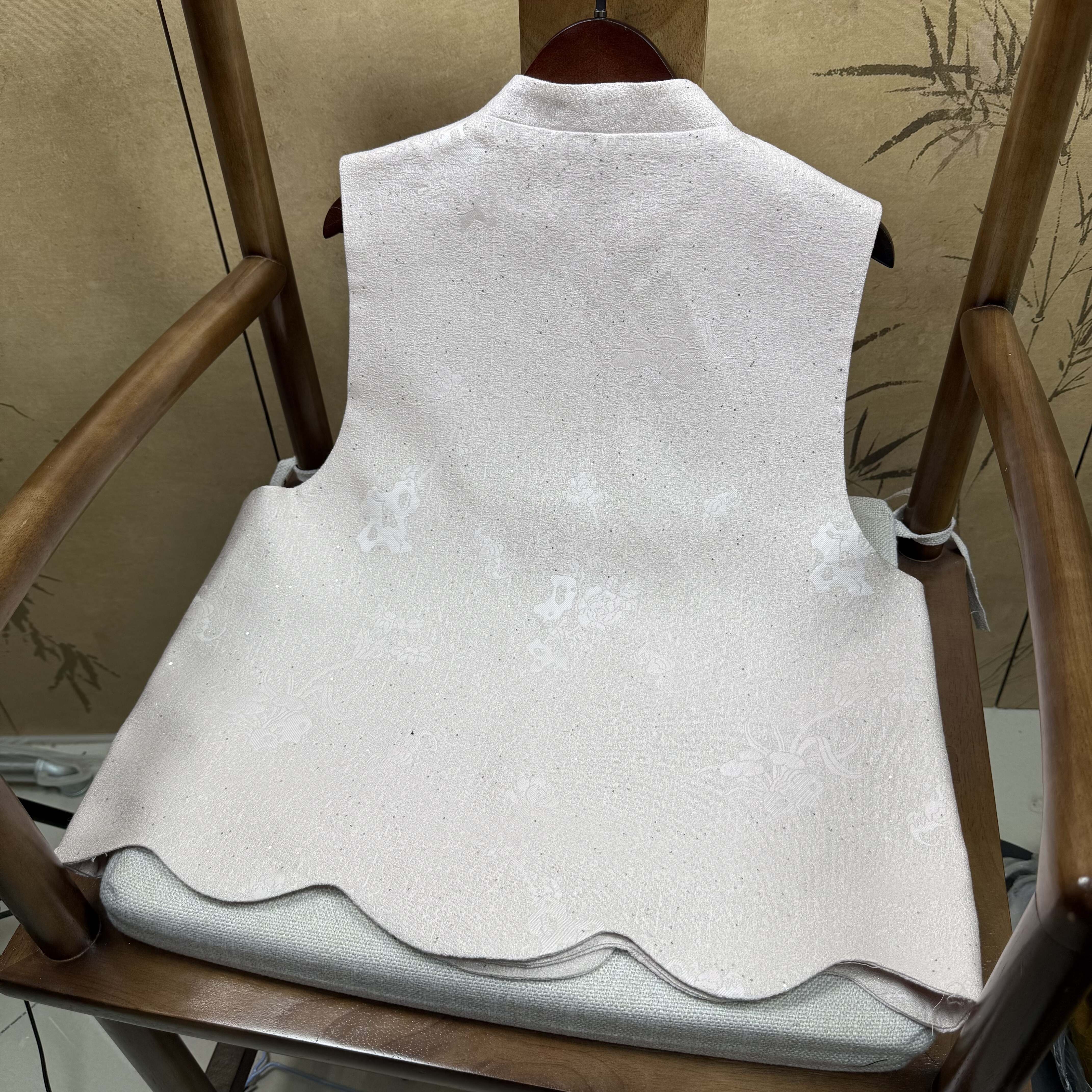 上久楷品牌50姆米丝羊毛山石牡丹淡粉色biu闪精致盘扣马甲国风