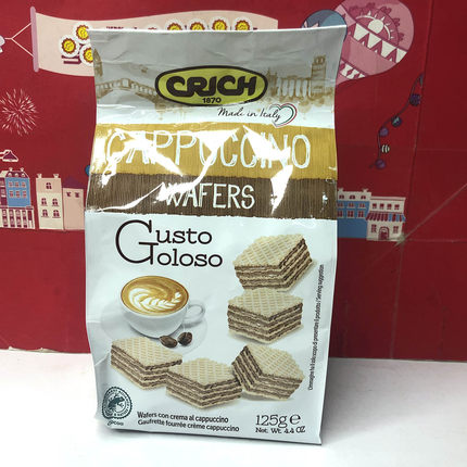 临期 意大利进口可意奇卡布奇诺奶油味威化饼干125g休闲零食小吃