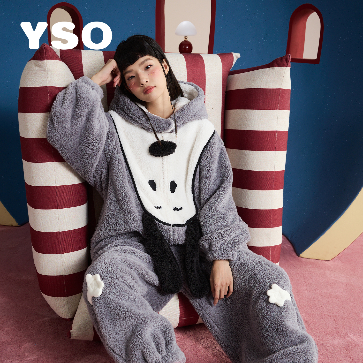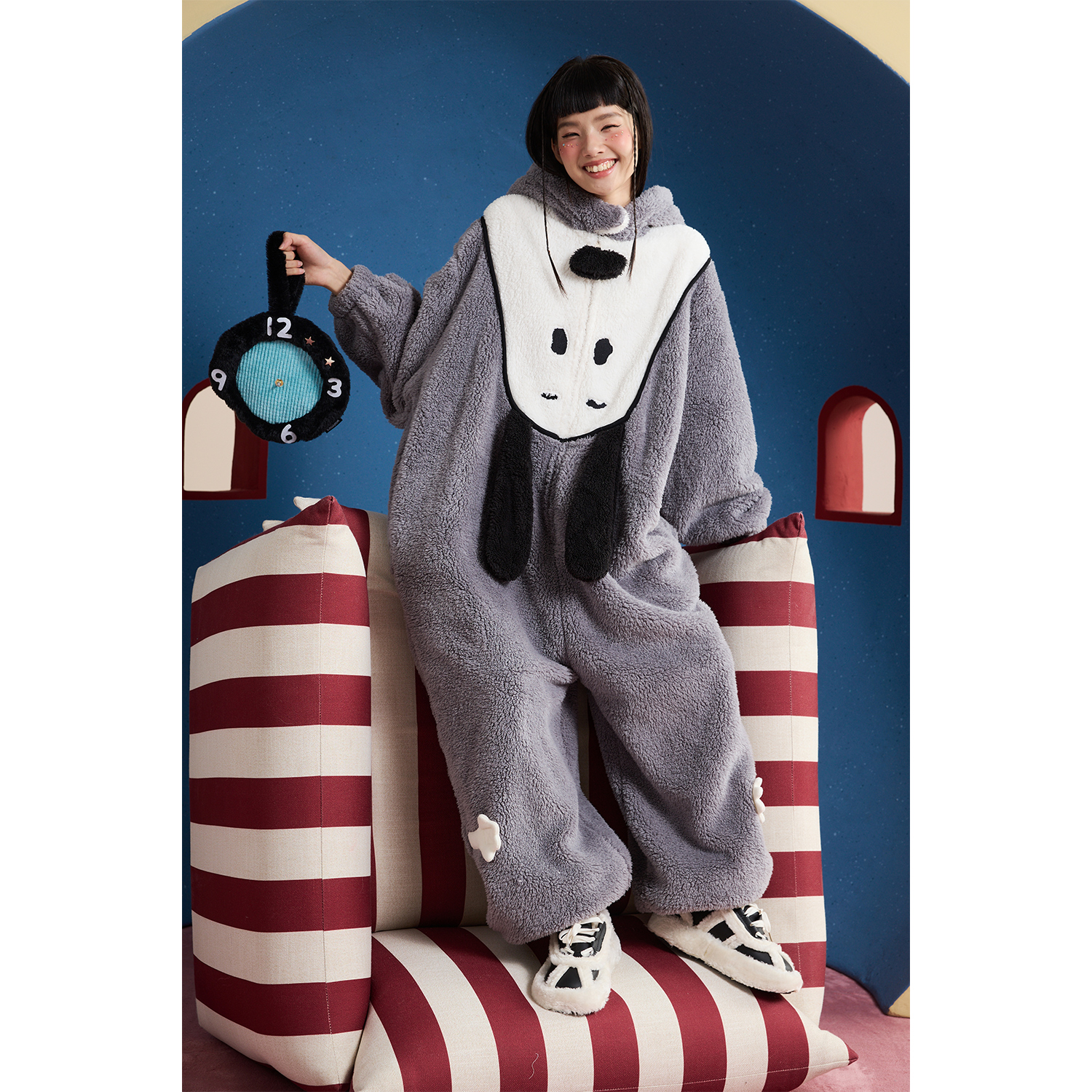 yso【史努比联名】睡衣女秋冬卡通可爱小狗珊瑚绒加厚连体睡衣D
