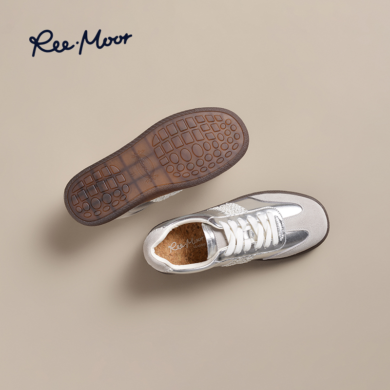 REEMOOR睿慕2025秋季银色德训鞋女新款复古板鞋百搭鞋子休闲鞋
