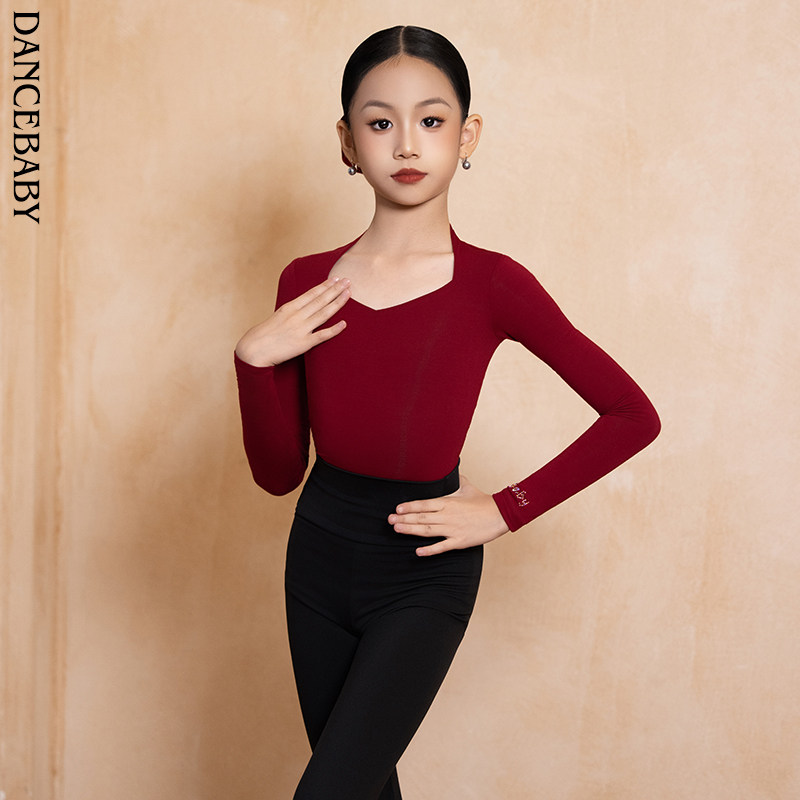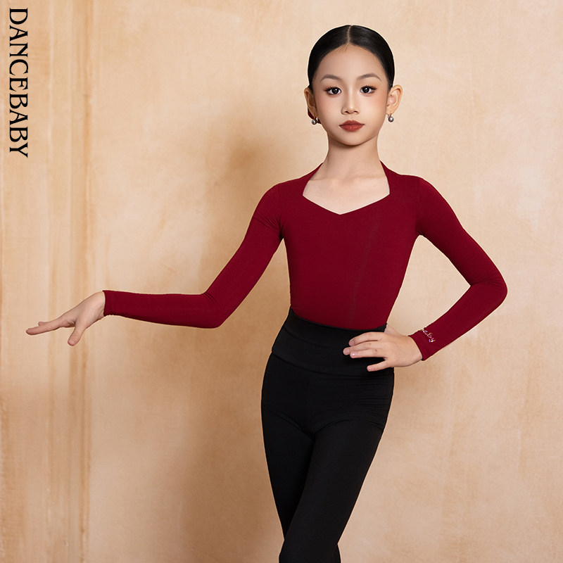 Dancebaby拉丁舞服新款秋冬练功服上衣女童跳舞舞蹈上衣DAS779HS