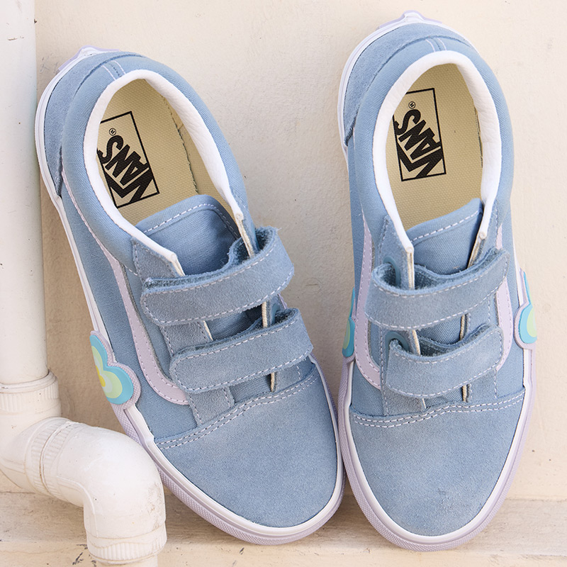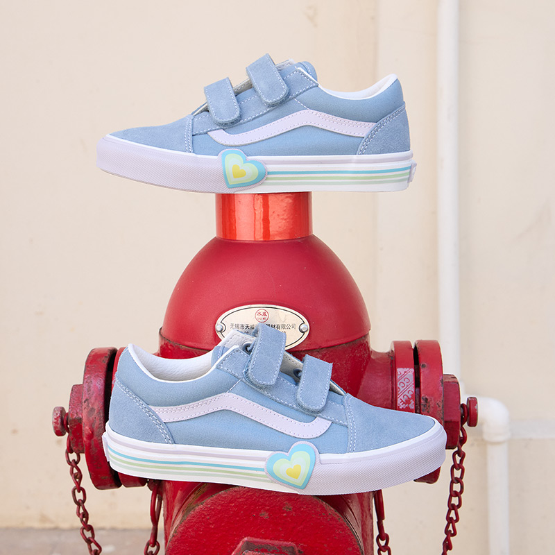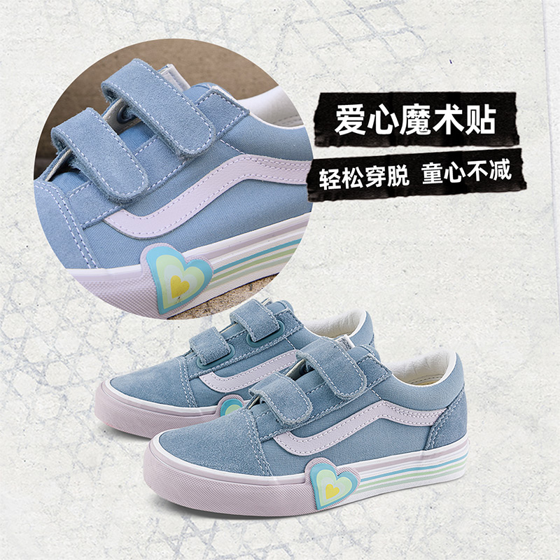 Vans范斯童鞋官方 Old Skool V Heart灰蓝色中大童板鞋